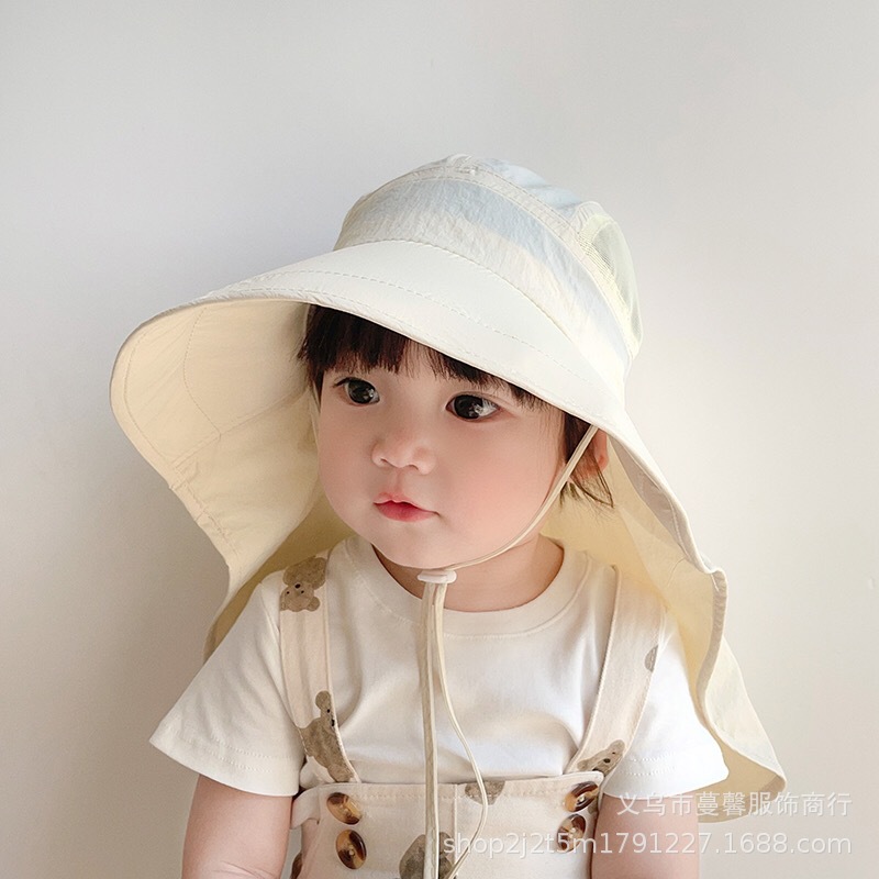 아기 여름 자외선 차단제 모자 큰 챙 숄 모자 목 보호 모자 어린이 통기성 야외 태양 모자 어부 모자스토어 가기
