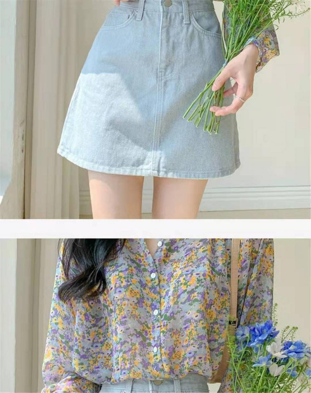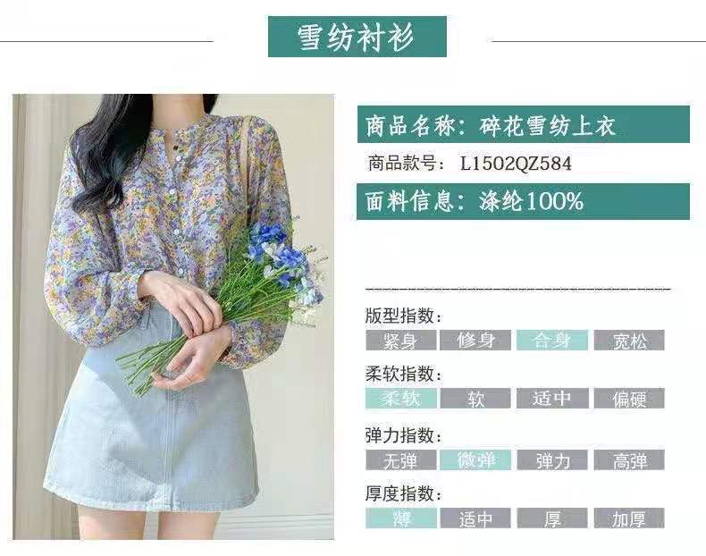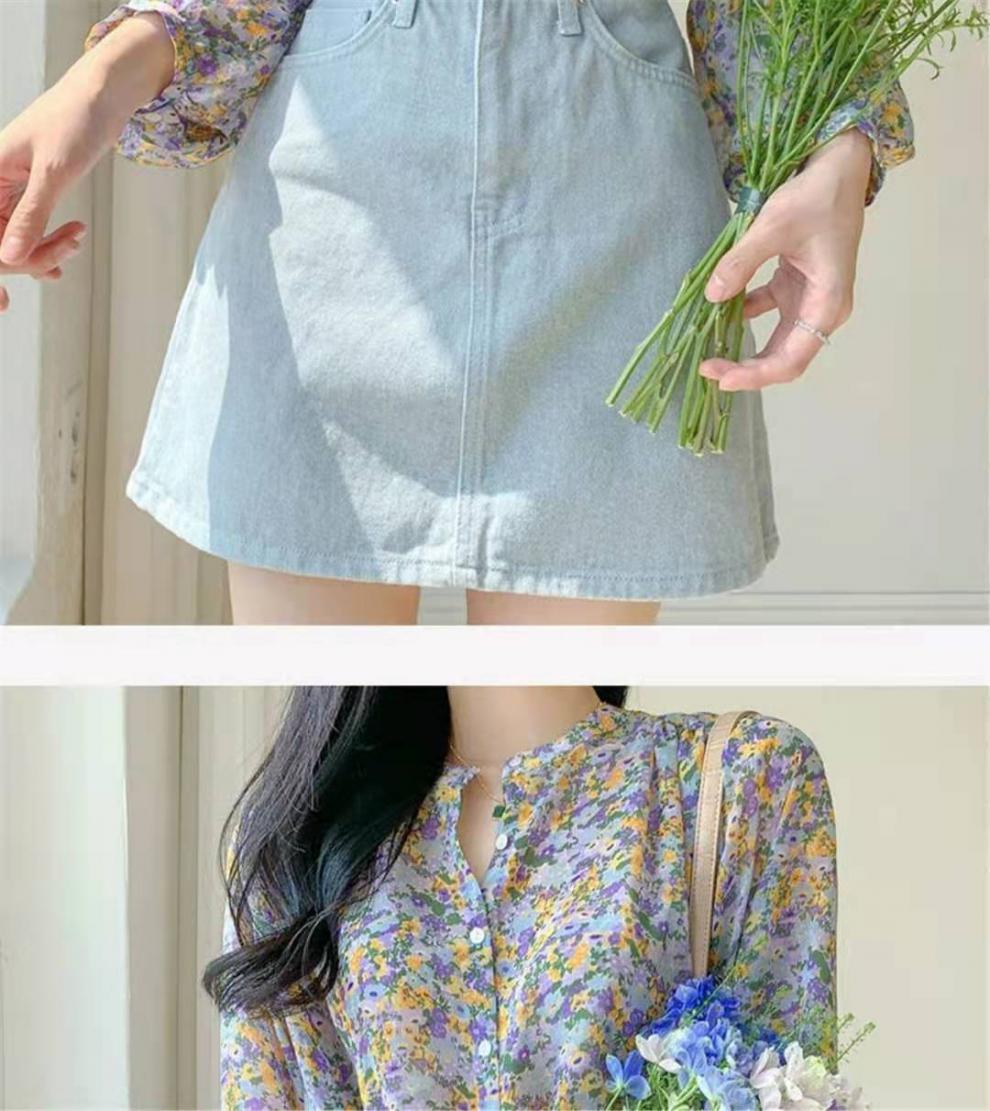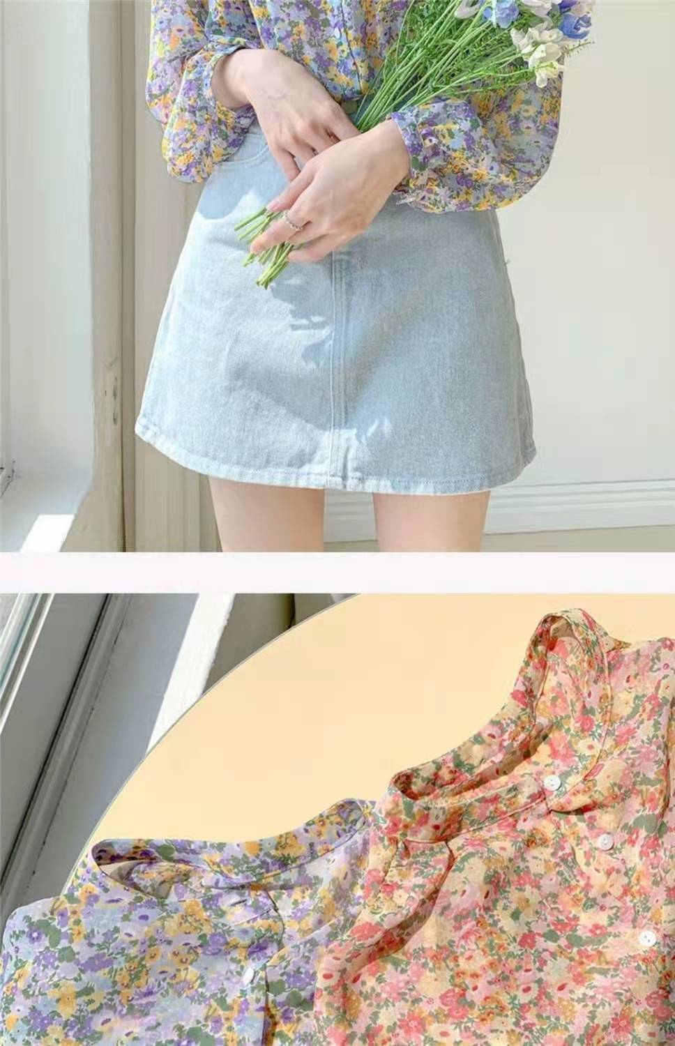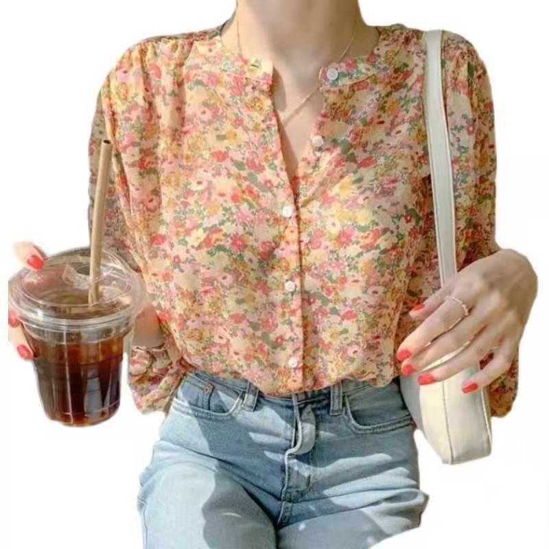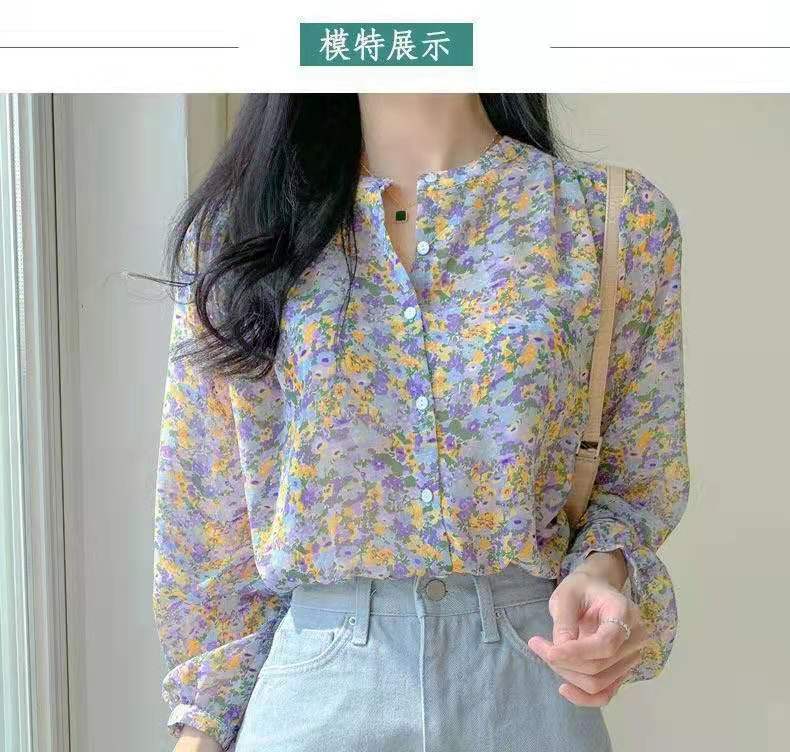 한국 세련된 달콤한 꽃 쉬폰 셔츠 여자의 봄 2023 새로운 디자인 감각 틈새 긴 소매 웨스턴 스타일 탑스토어 가기