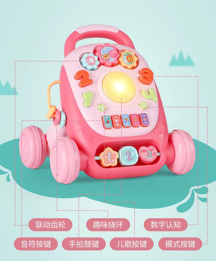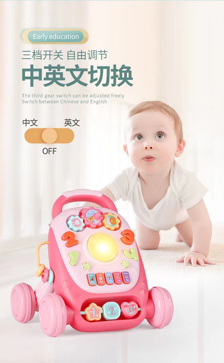 미니 장난감 동축 아기 조기 교육 중국어-영어 어린이 다기능 학습 테이블 교육용 아기 테이블 아기 푸시 카트