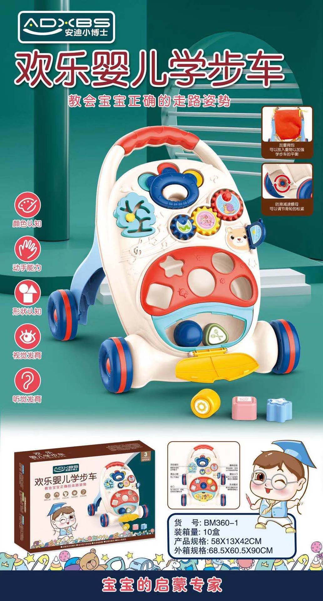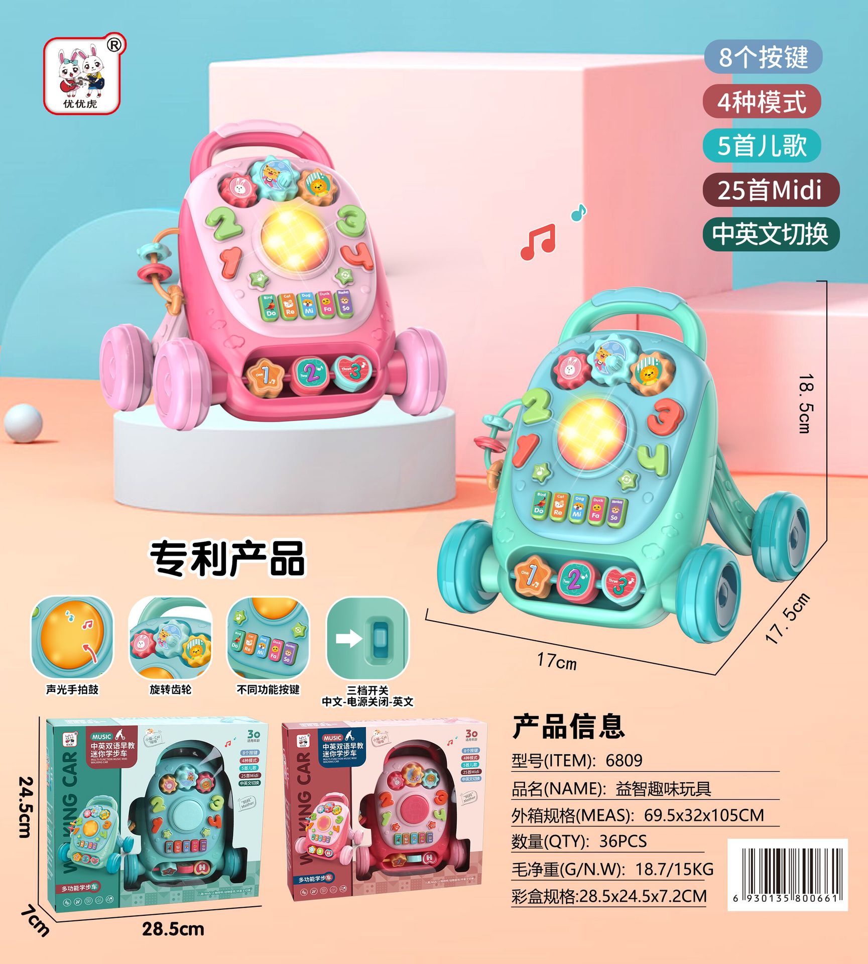 미니 장난감 동축 아기 조기 교육 중국어-영어 어린이 다기능 학습 테이블 교육용 아기 테이블 아기 푸시 카트스토어 가기