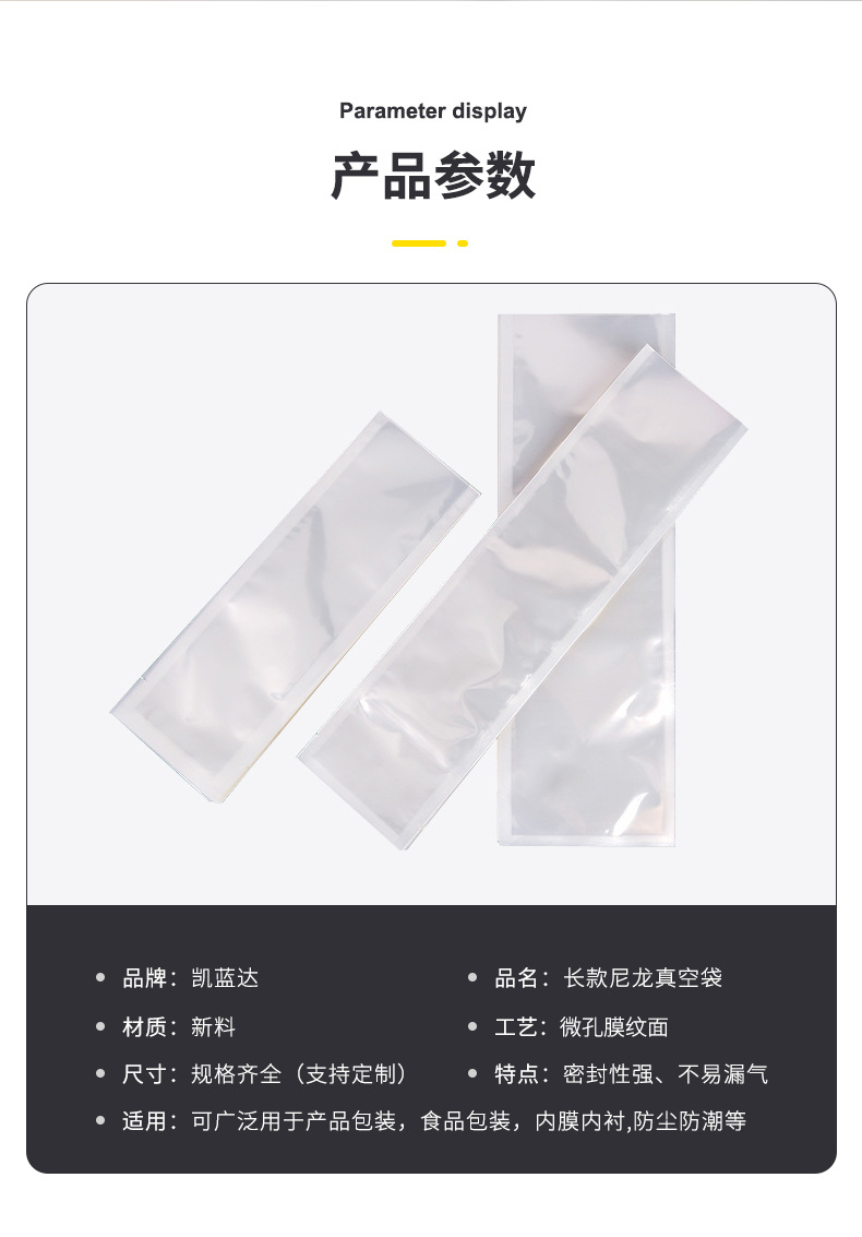 긴형 나일론 진공 식품 포장 백, 플라스틱 식품 밀봉 포장 백, 두꺼운 육포, 건어물, 오리목살 보관 백