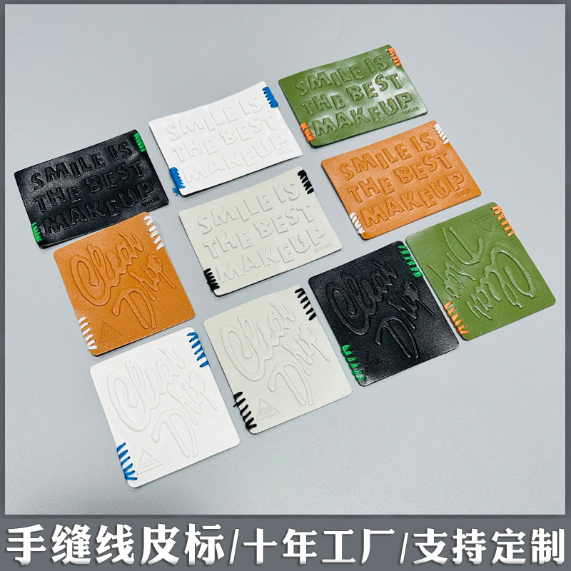 핸드 스티칭 가죽 라벨 10 년 공장 3D 입체 양각 볼록 의류 장식 라벨 pu 가죽 브랜드 가죽 배지
