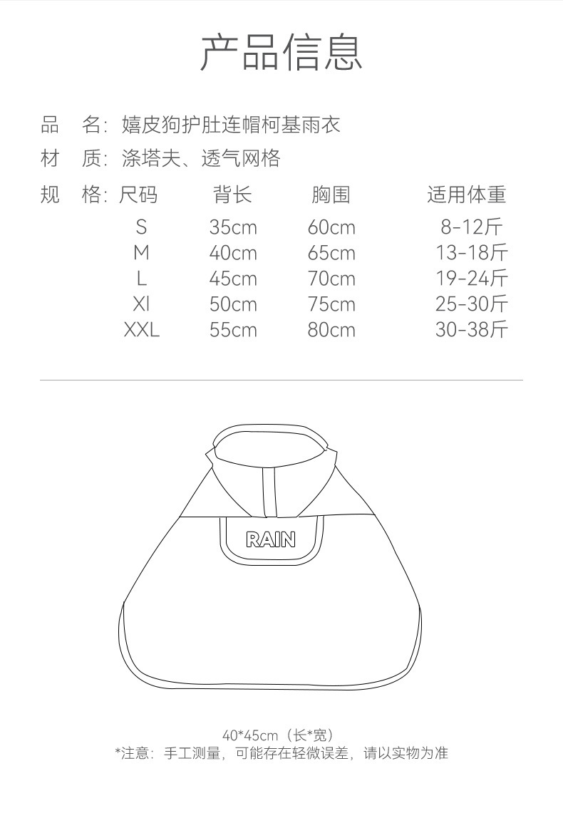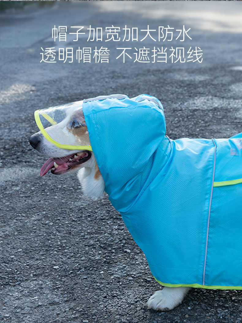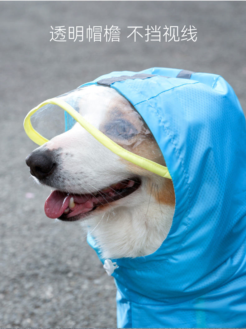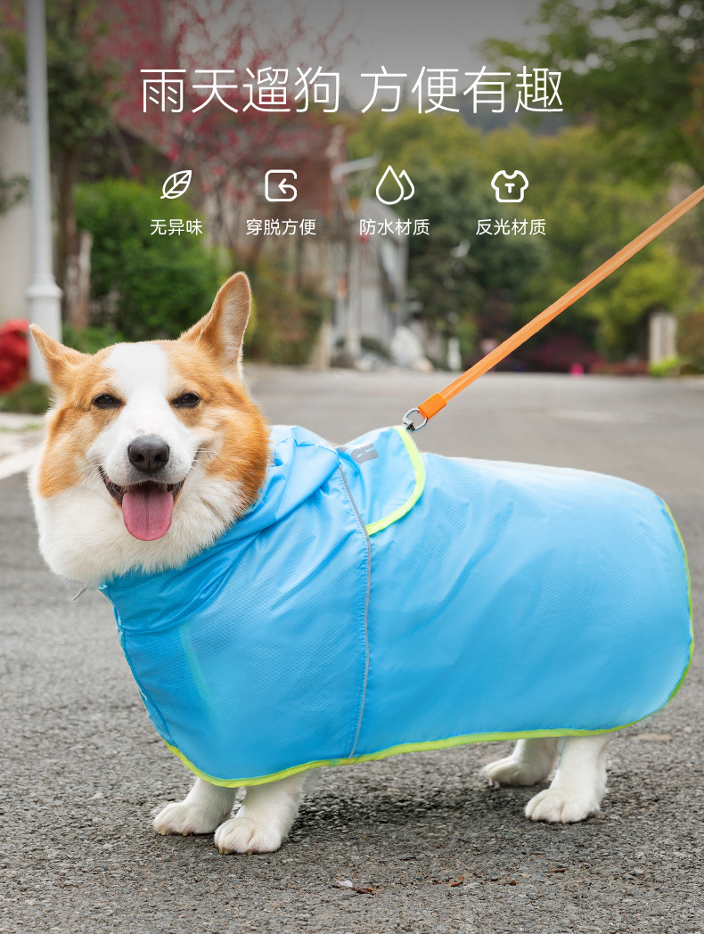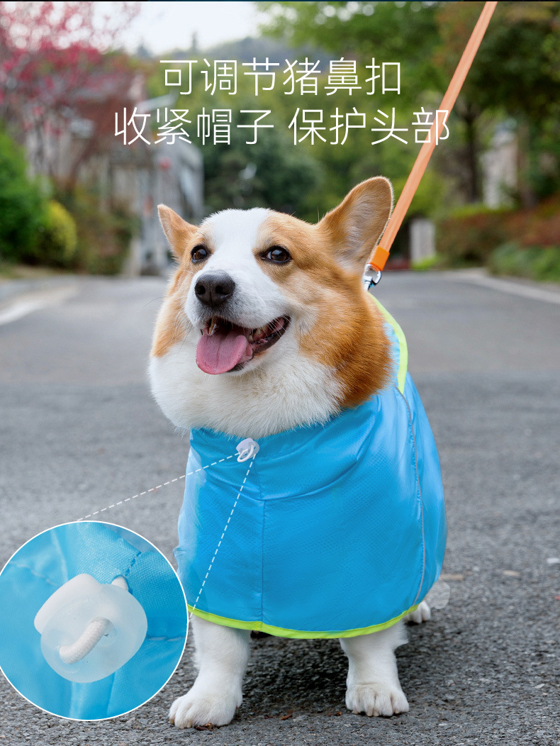 애완 동물 비옷 배꼽 보호 후드 사계절 유니버설 야간 반사 견인 구멍 작은 개 코기 개 옷