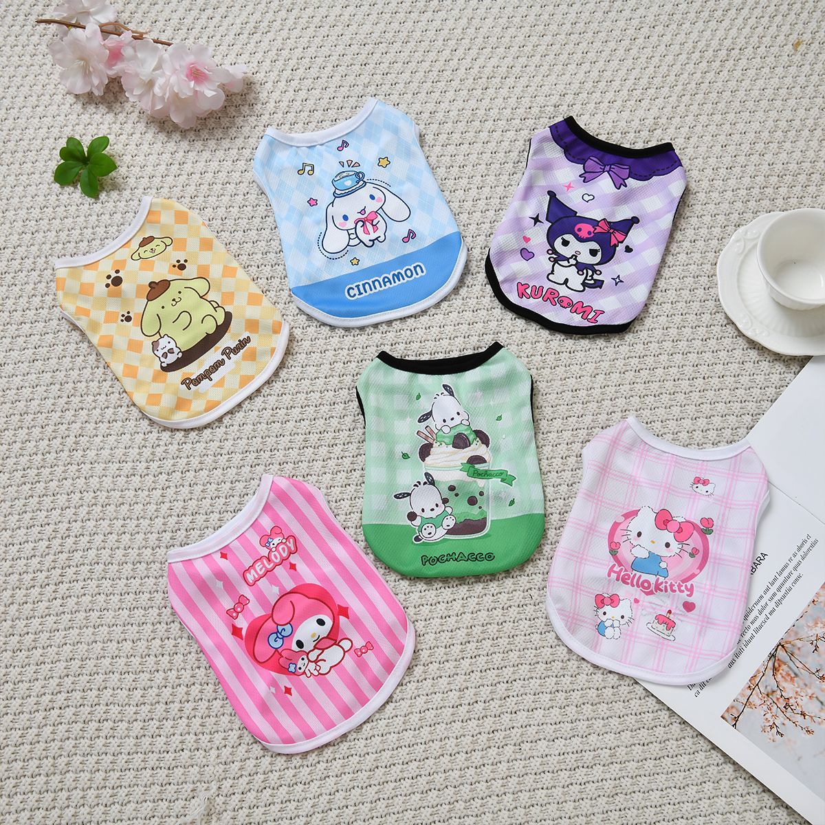 애완 동물 귀여운 조끼 외국 스타일 슈퍼 귀여운 고양이와 개 여름 멋진 옷 산리오 시리즈 데미안 통기성 옷스토어 가기