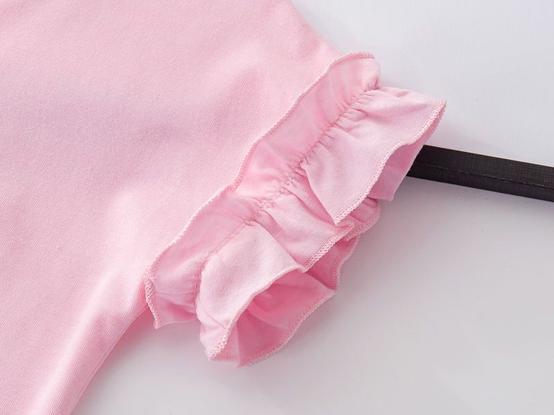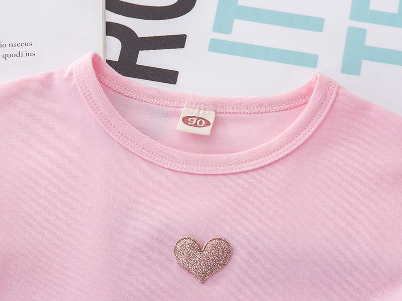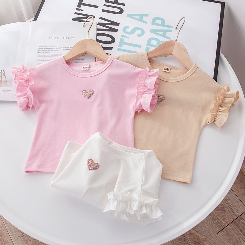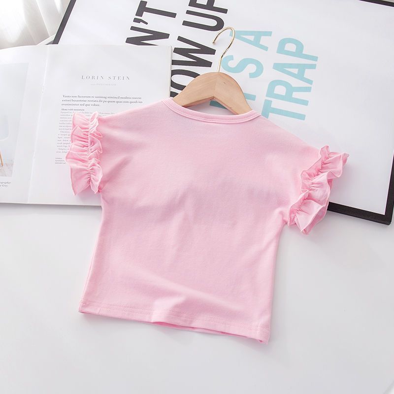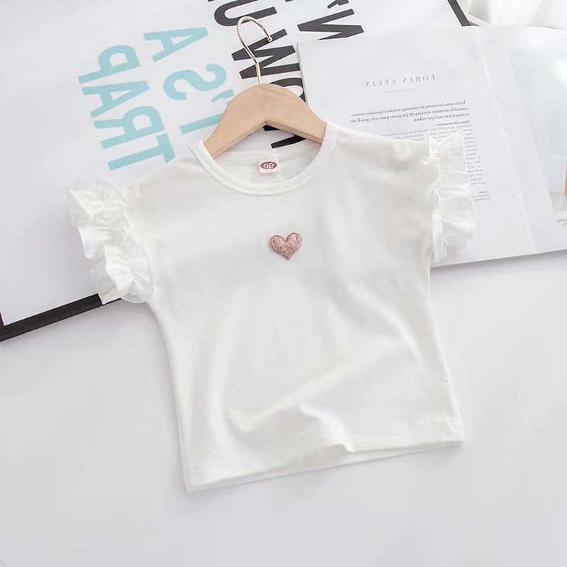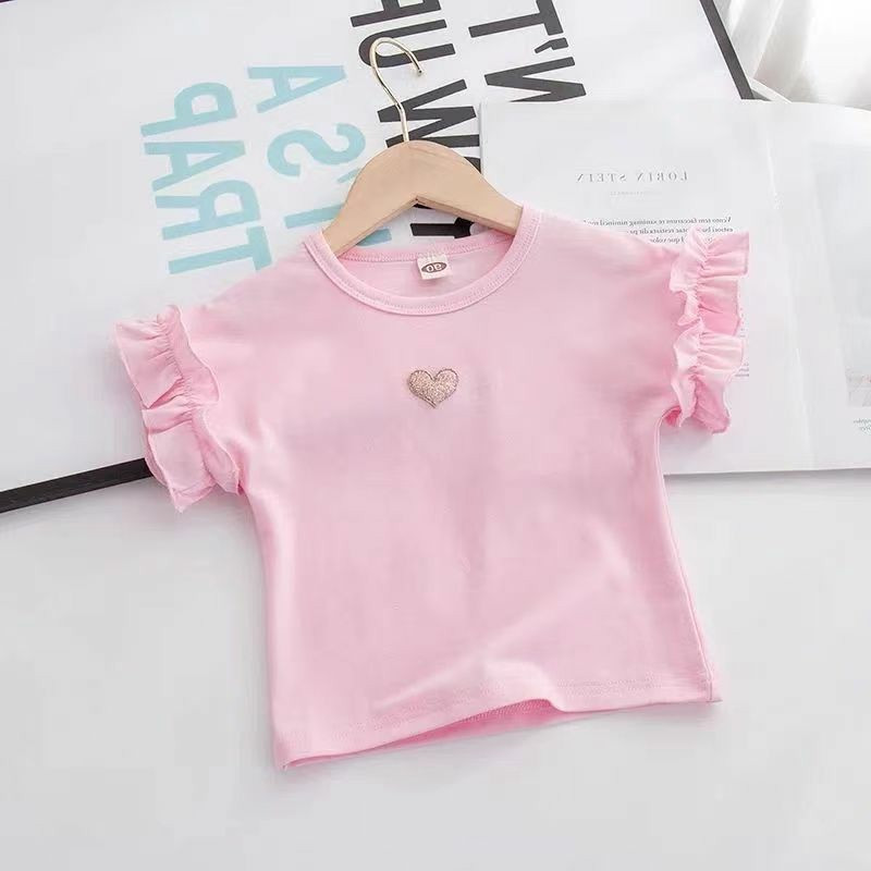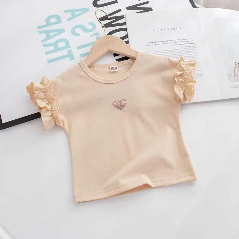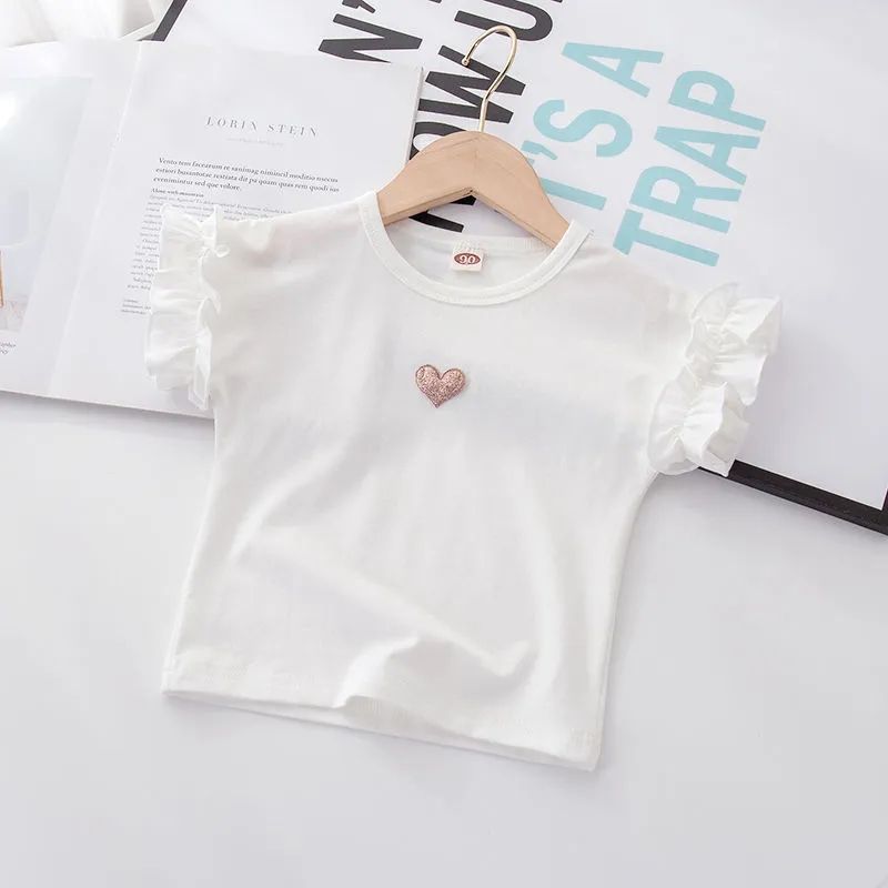 여아 여름 반팔 티셔츠 아기의 서양 스타일 어린이의 성격 트렌디 한 한국 스타일 레이스 트럼펫 슬리브 사랑 단색 탑스토어 가기