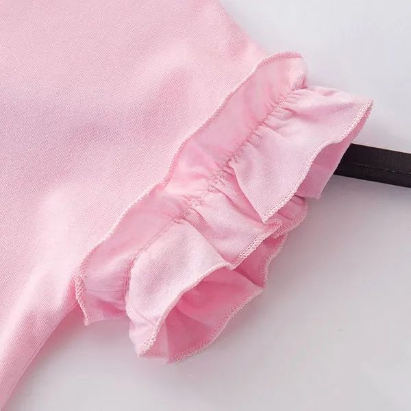 여아 여름 반팔 티셔츠 아기의 서양 스타일 어린이의 성격 트렌디 한 한국 스타일 레이스 트럼펫 슬리브 사랑 단색 탑