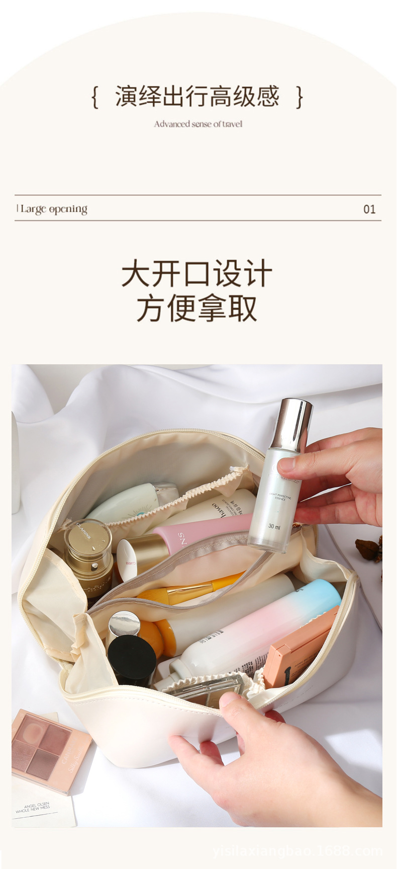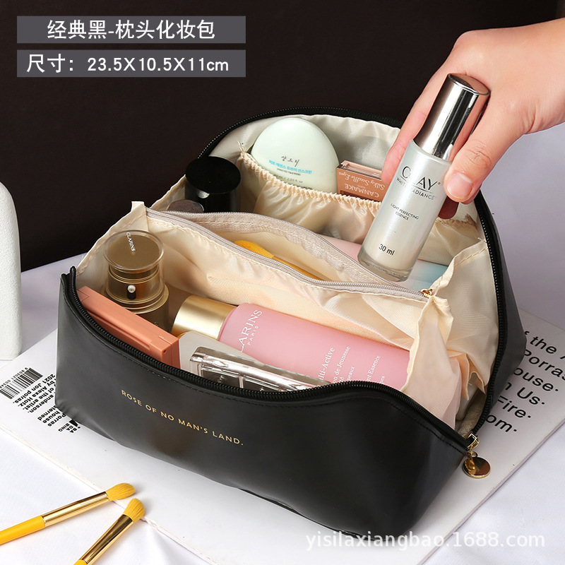 오르간형 베개 가방 화장품 가방 여성용 대용량 휴대용 화장품 수납 여행용 핸드백 문자 장식 잠금장치스토어 가기