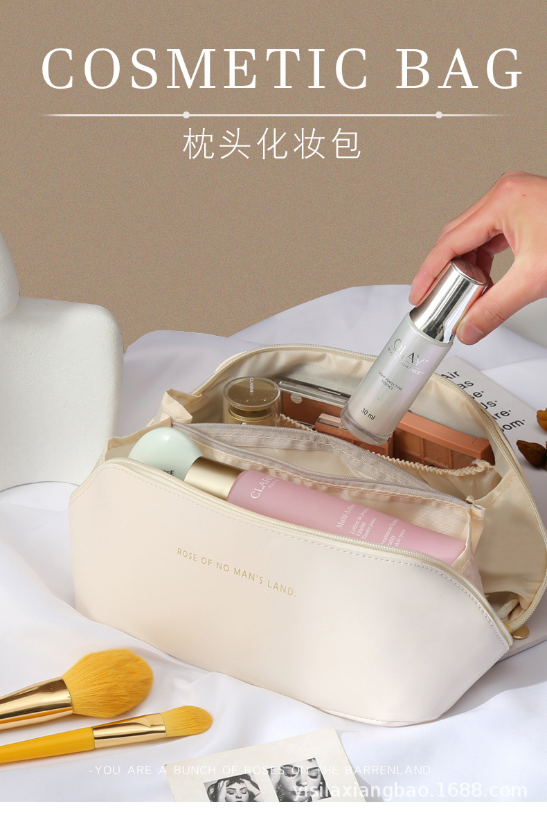 오르간형 베개 가방 화장품 가방 여성용 대용량 휴대용 화장품 수납 여행용 핸드백 문자 장식 잠금장치