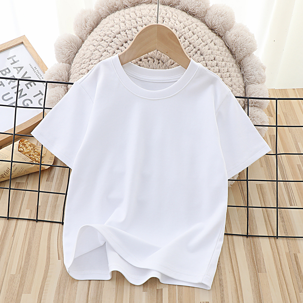 50s 리퀴드 암모니아 어린이 단색 반팔 티셔츠 남아와 여아 면 화이트 베이스 티셔츠 새로운 여름 아동복