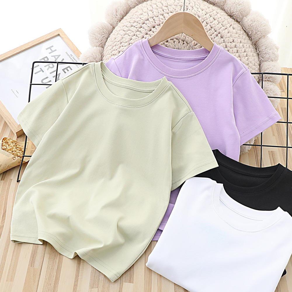 50s 리퀴드 암모니아 어린이 단색 반팔 티셔츠 남아와 여아 면 화이트 베이스 티셔츠 새로운 여름 아동복스토어 가기