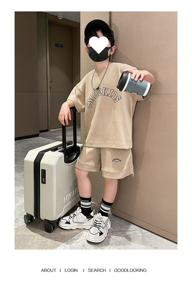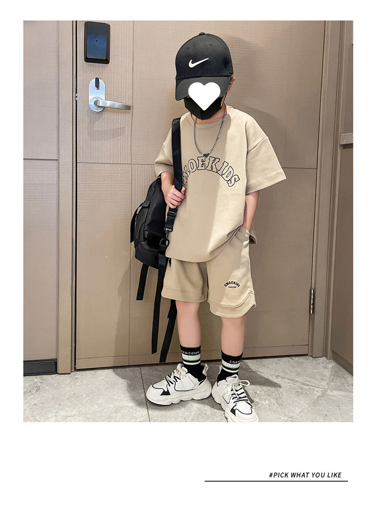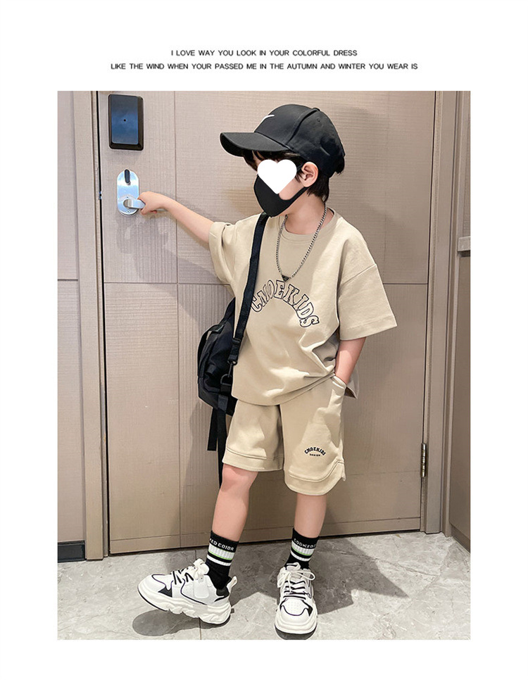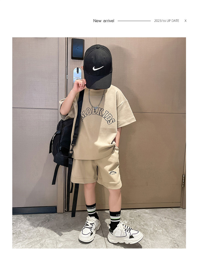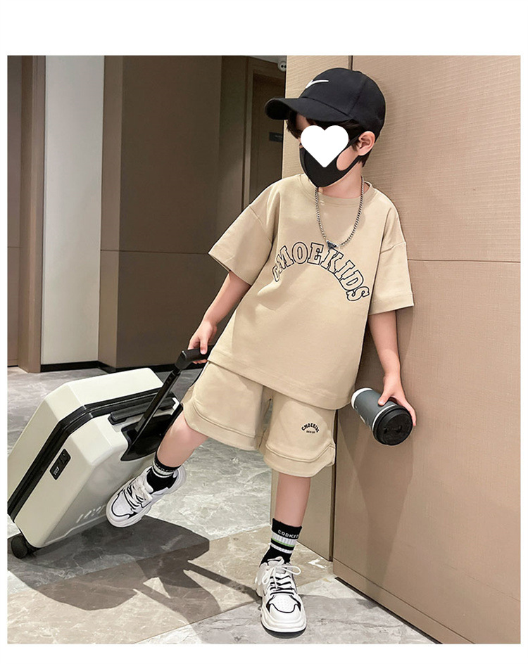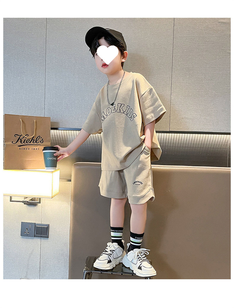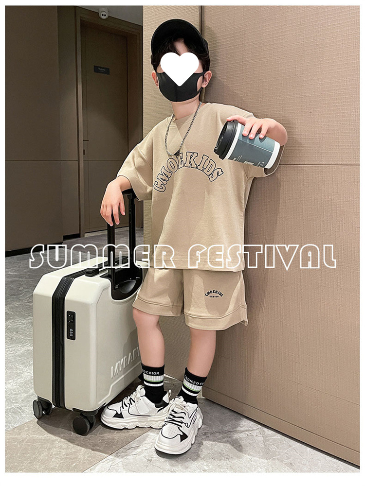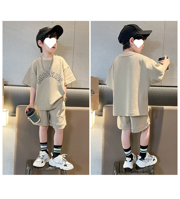 소년 얇은 스포츠 세트 2023 여름 새 알파벳 프린트 티셔츠 5 점 바지 잘생긴 캐주얼 투피스 세트