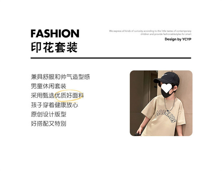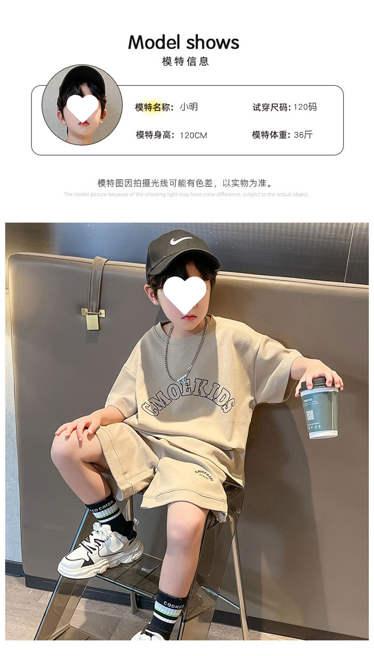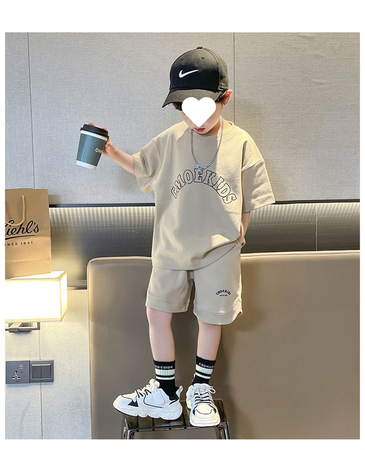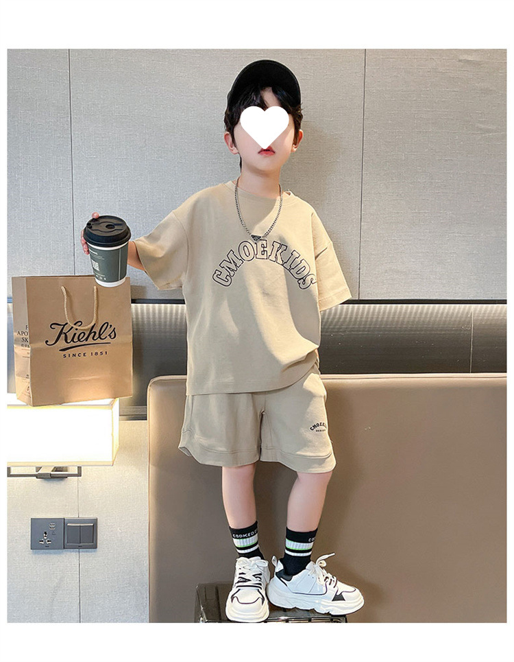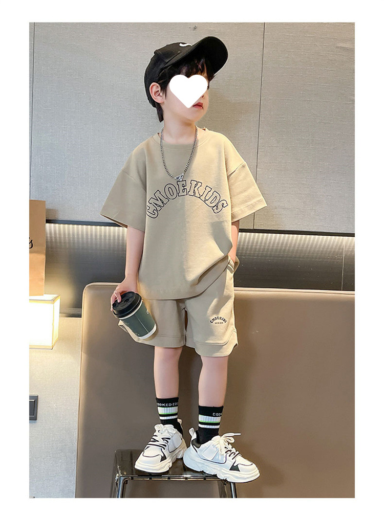 소년 얇은 스포츠 세트 2023 여름 새 알파벳 프린트 티셔츠 5 점 바지 잘생긴 캐주얼 투피스 세트스토어 가기