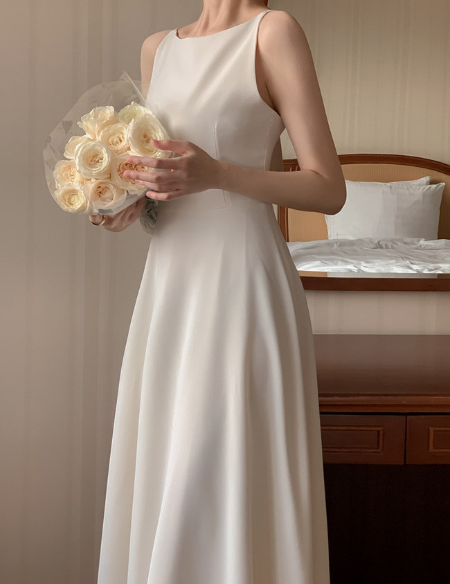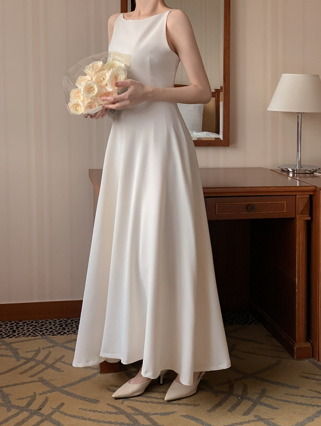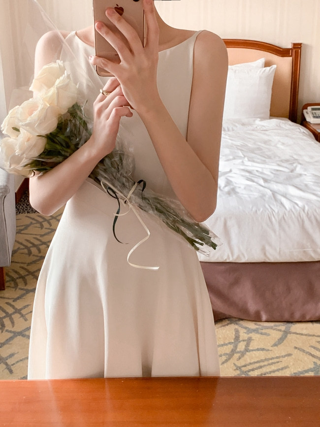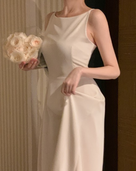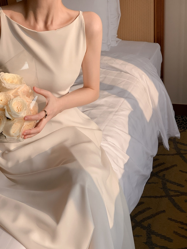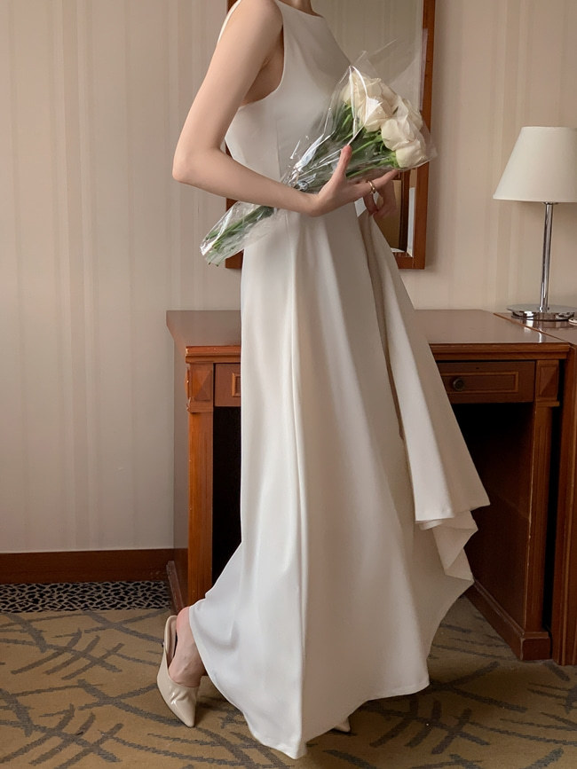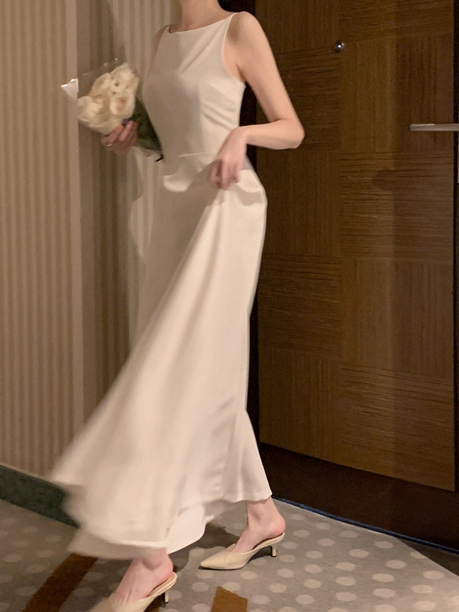 크기 업데이트 한국 세련된 부드러운 스타일 빛 럭셔리 오프 숄더 높은 디자인 민소매 긴 원피스스토어 가기