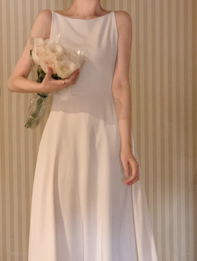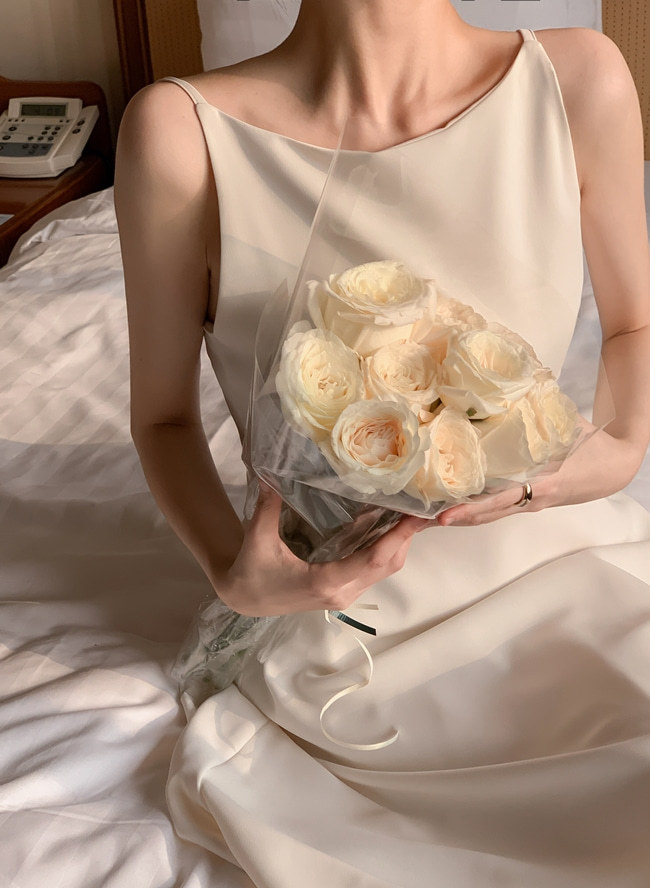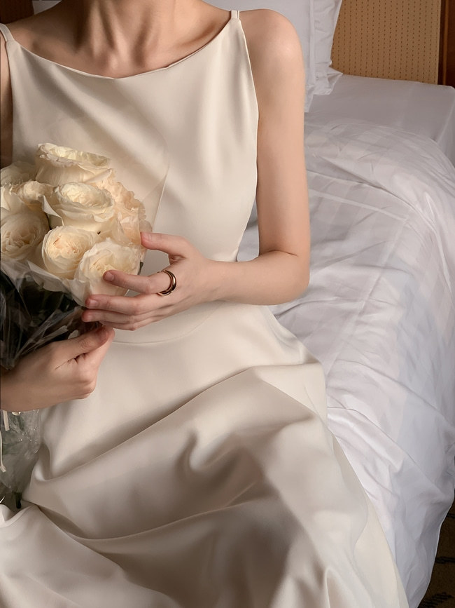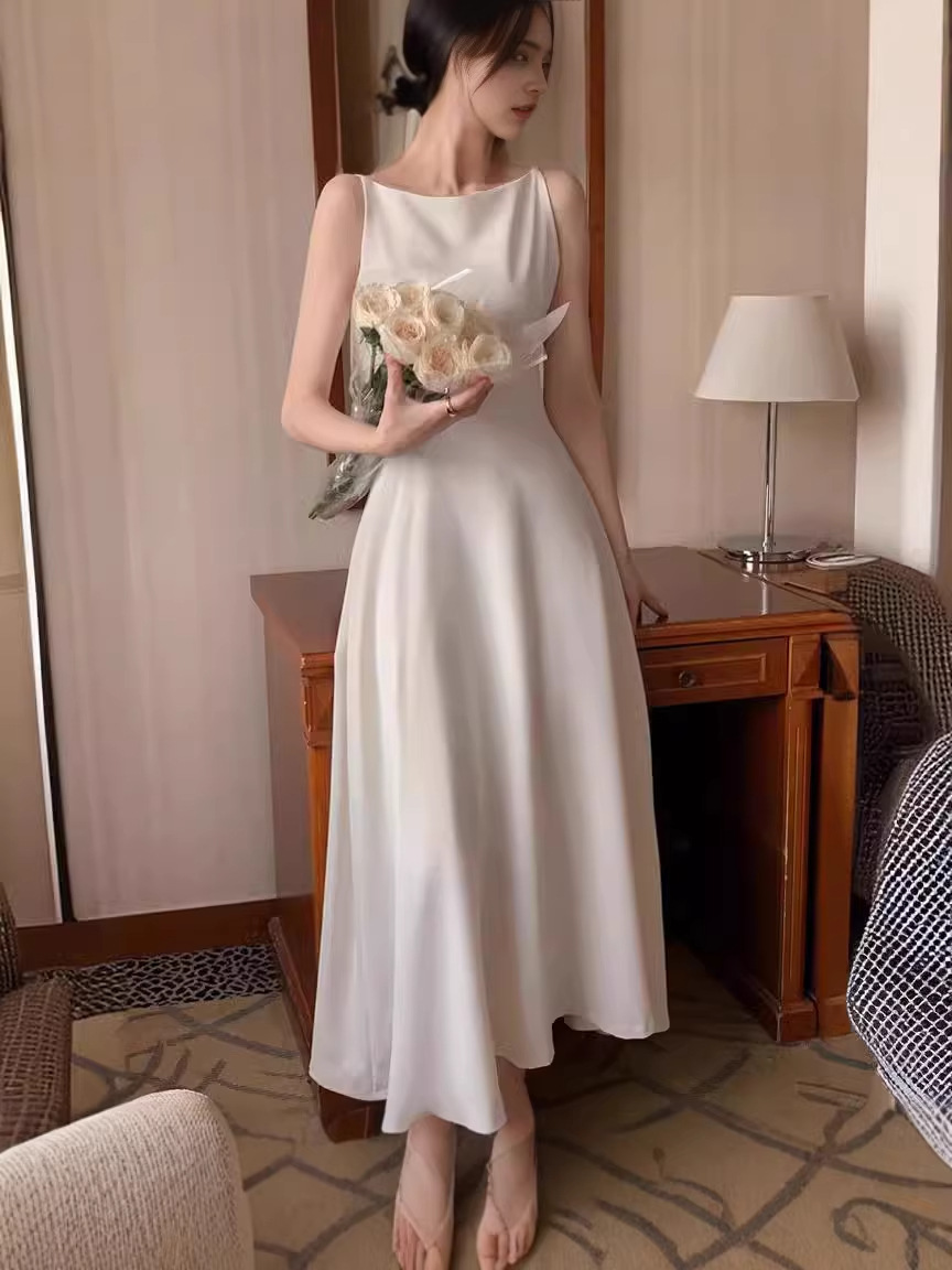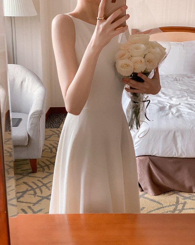 크기 업데이트 한국 세련된 부드러운 스타일 빛 럭셔리 오프 숄더 높은 디자인 민소매 긴 원피스스토어 가기