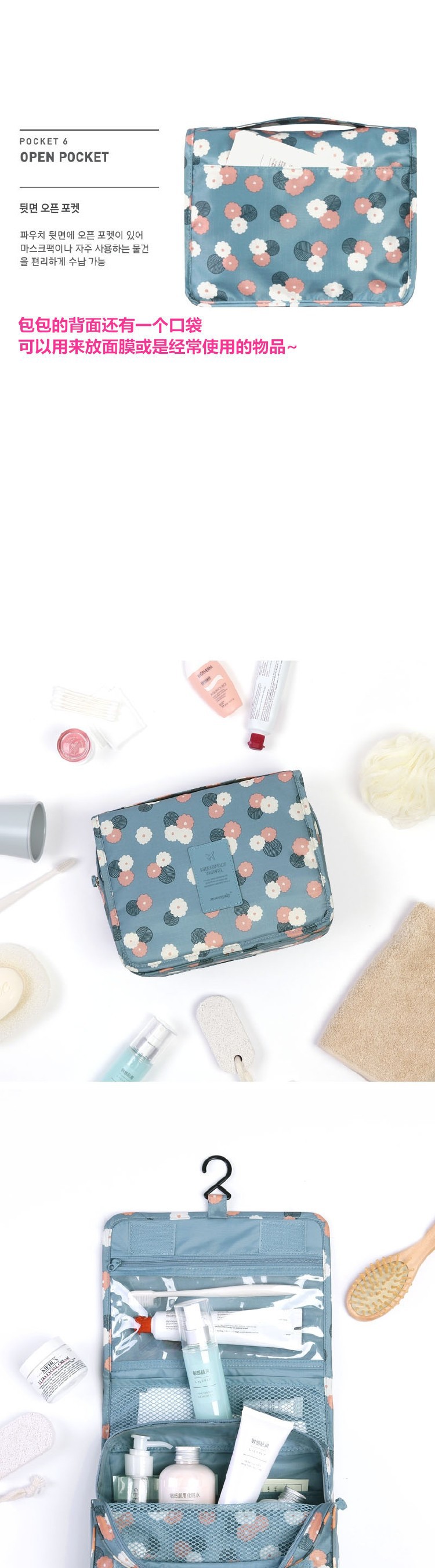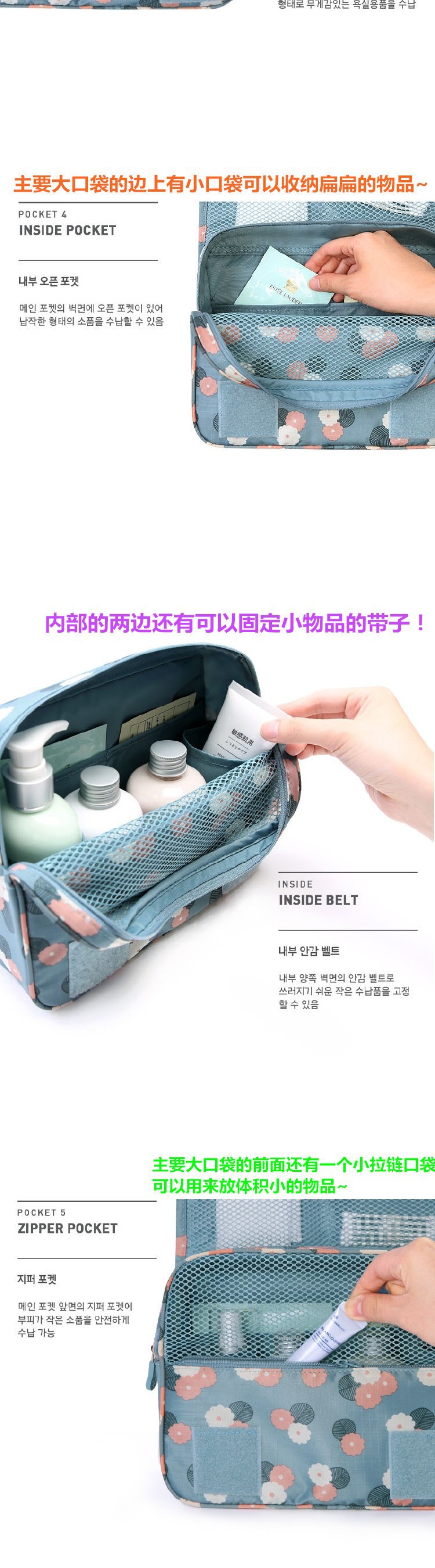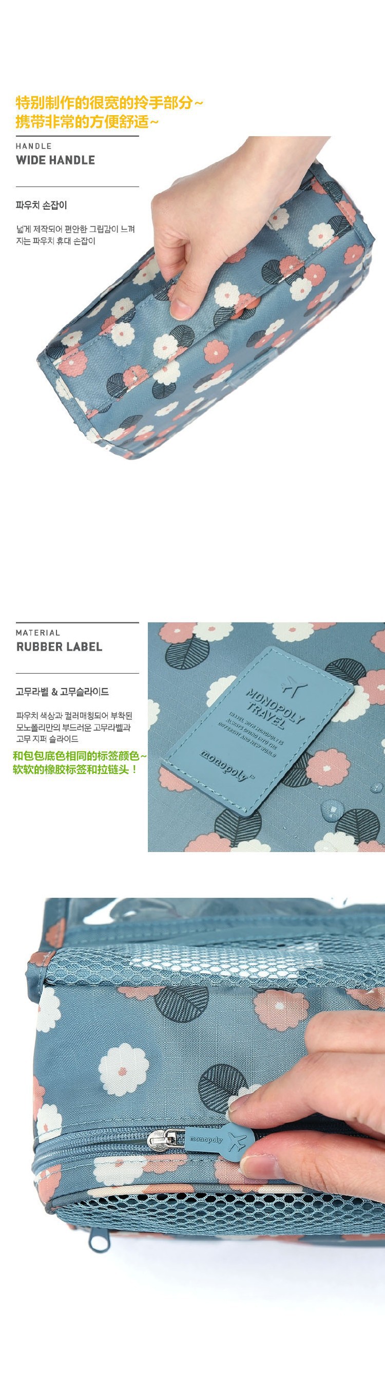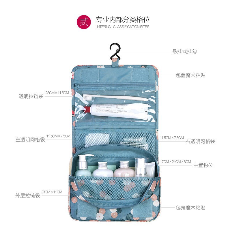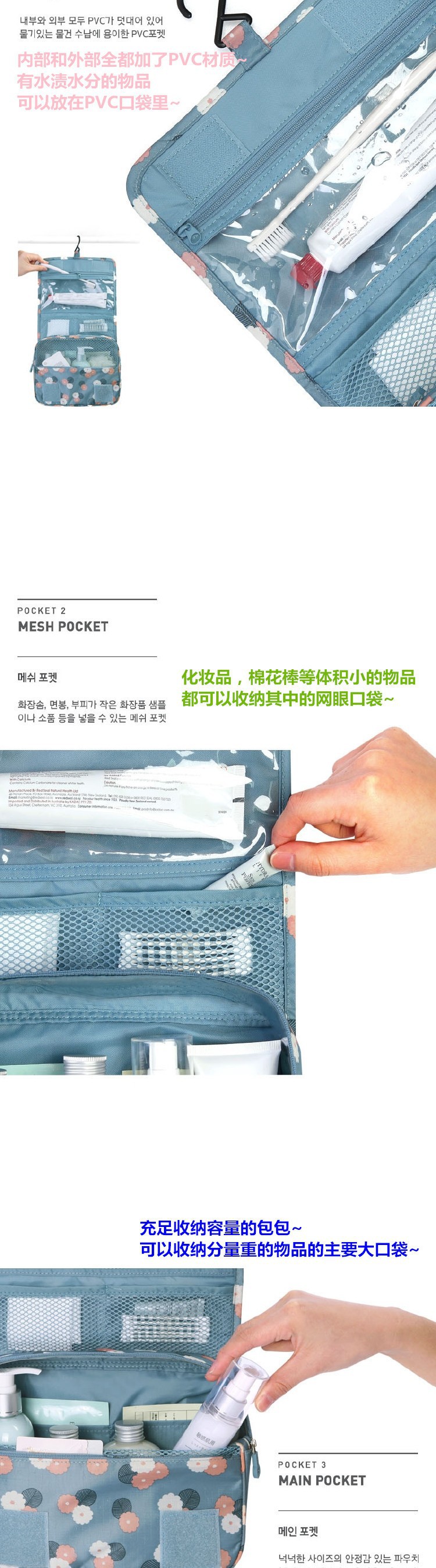 여행용 세면도구 가방 건식 및 습식 분리 대용량 걸이형 수납 가방 4종 세트 수납 가방 제조업체 도매스토어 가기