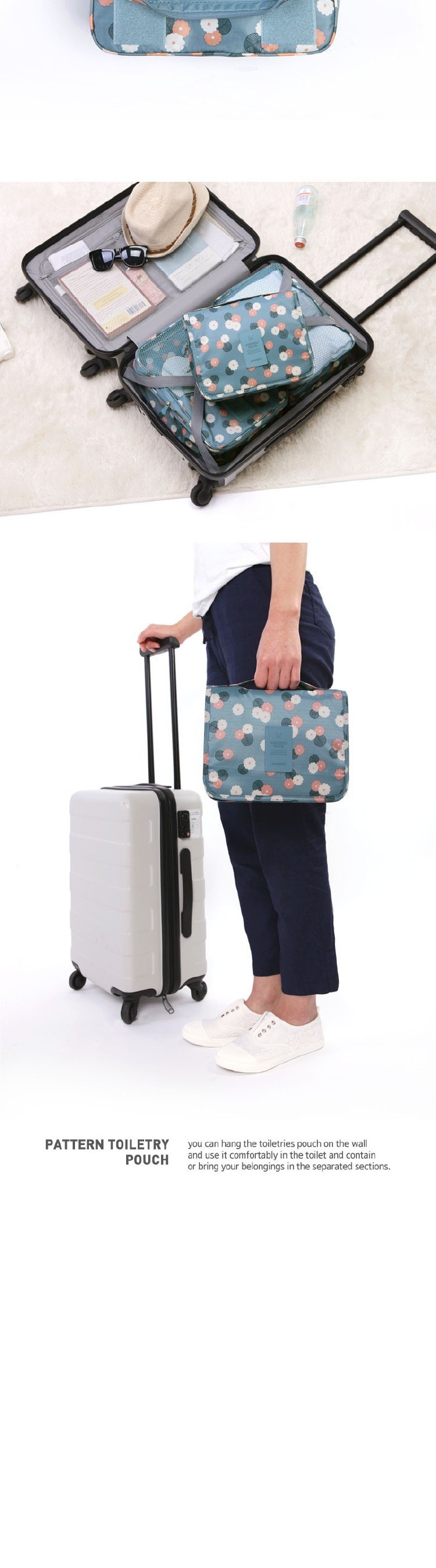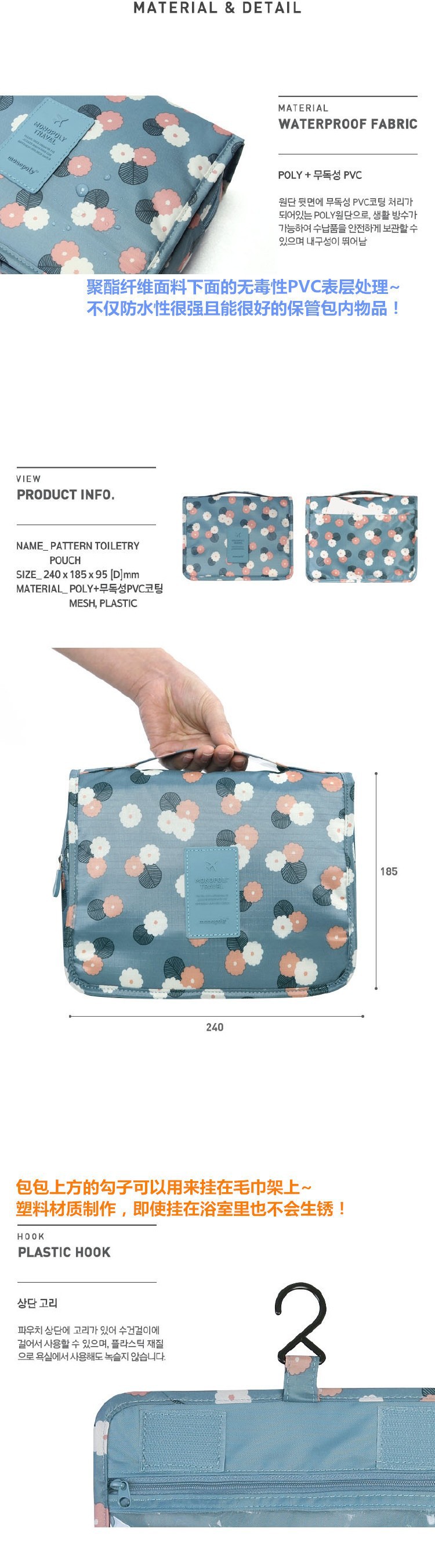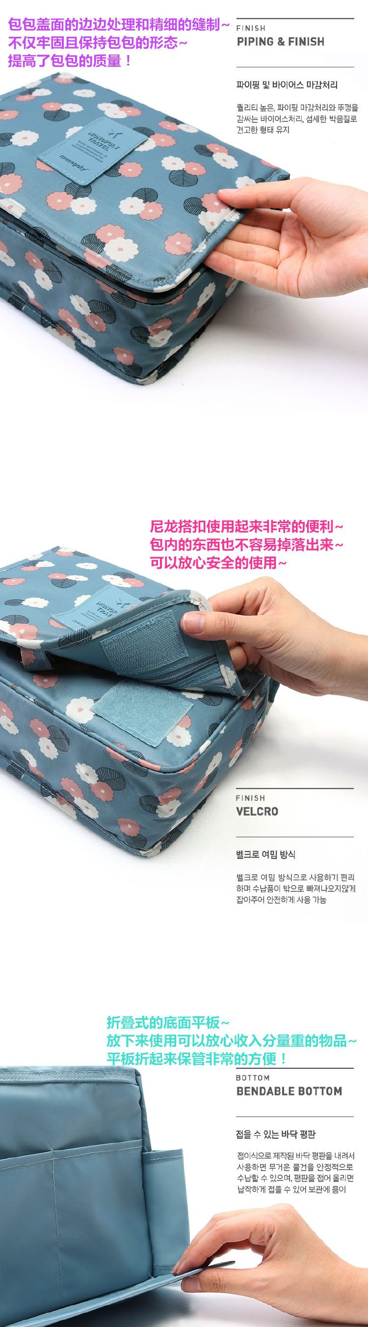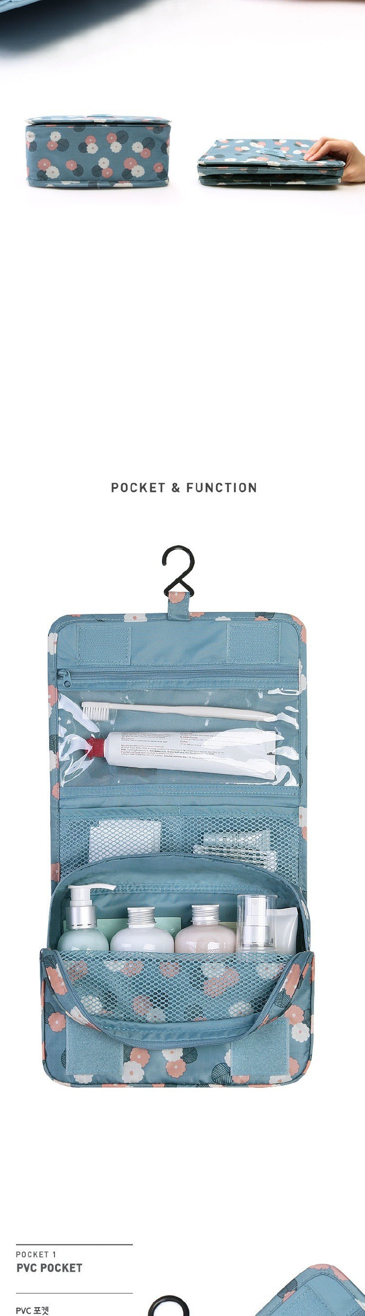 여행용 세면도구 가방 건식 및 습식 분리 대용량 걸이형 수납 가방 4종 세트 수납 가방 제조업체 도매스토어 가기