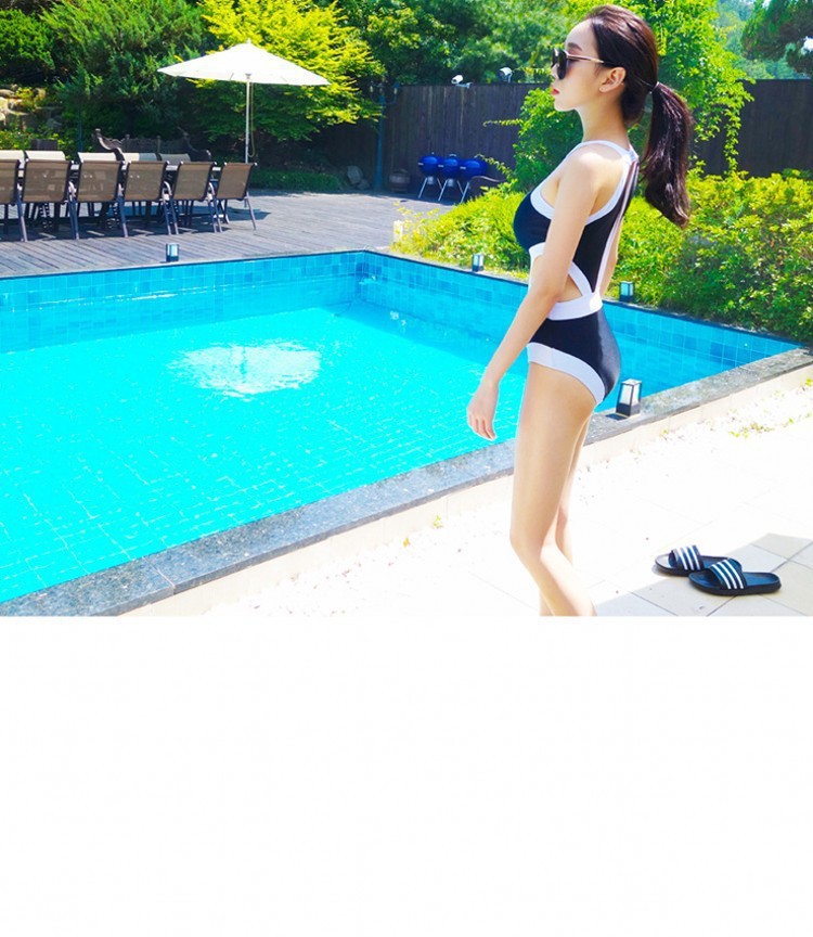 크로스보더 도매 수영복 여성 섹시 슬리밍 보수적인 백리스 비키니 흑백 온천 원피스 수영복 여성용스토어 가기