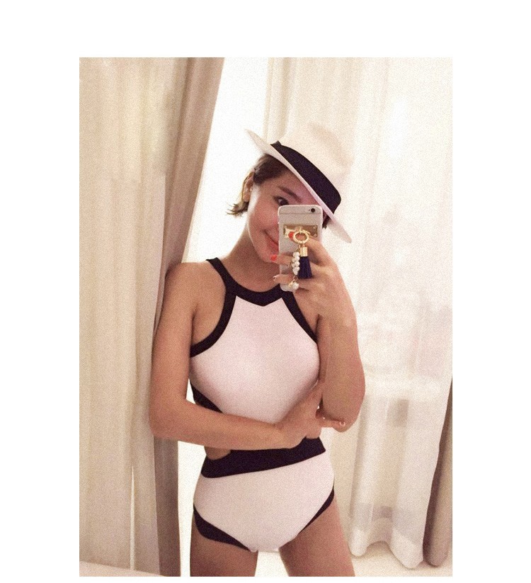 크로스보더 도매 수영복 여성 섹시 슬리밍 보수적인 백리스 비키니 흑백 온천 원피스 수영복 여성용
