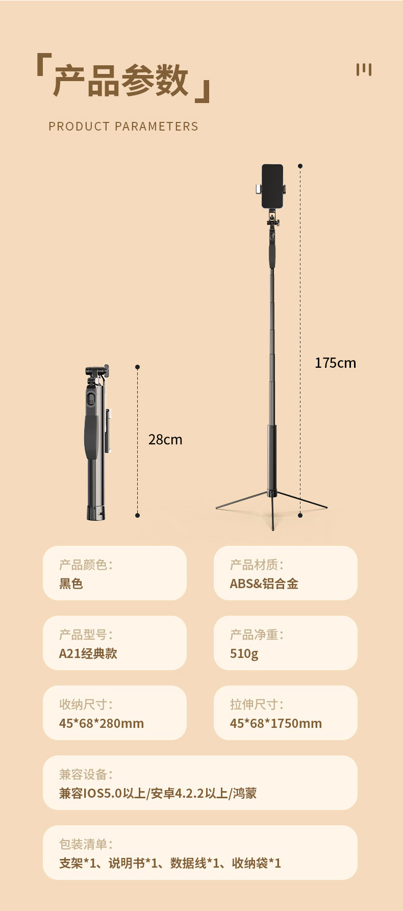 다기능 금속 안티 쉐이크 셀카 스틱 휴대 전화 라이브 3 다리 브래킷 카메라 아티팩트 A21 와 도매 트레몰로스토어 가기