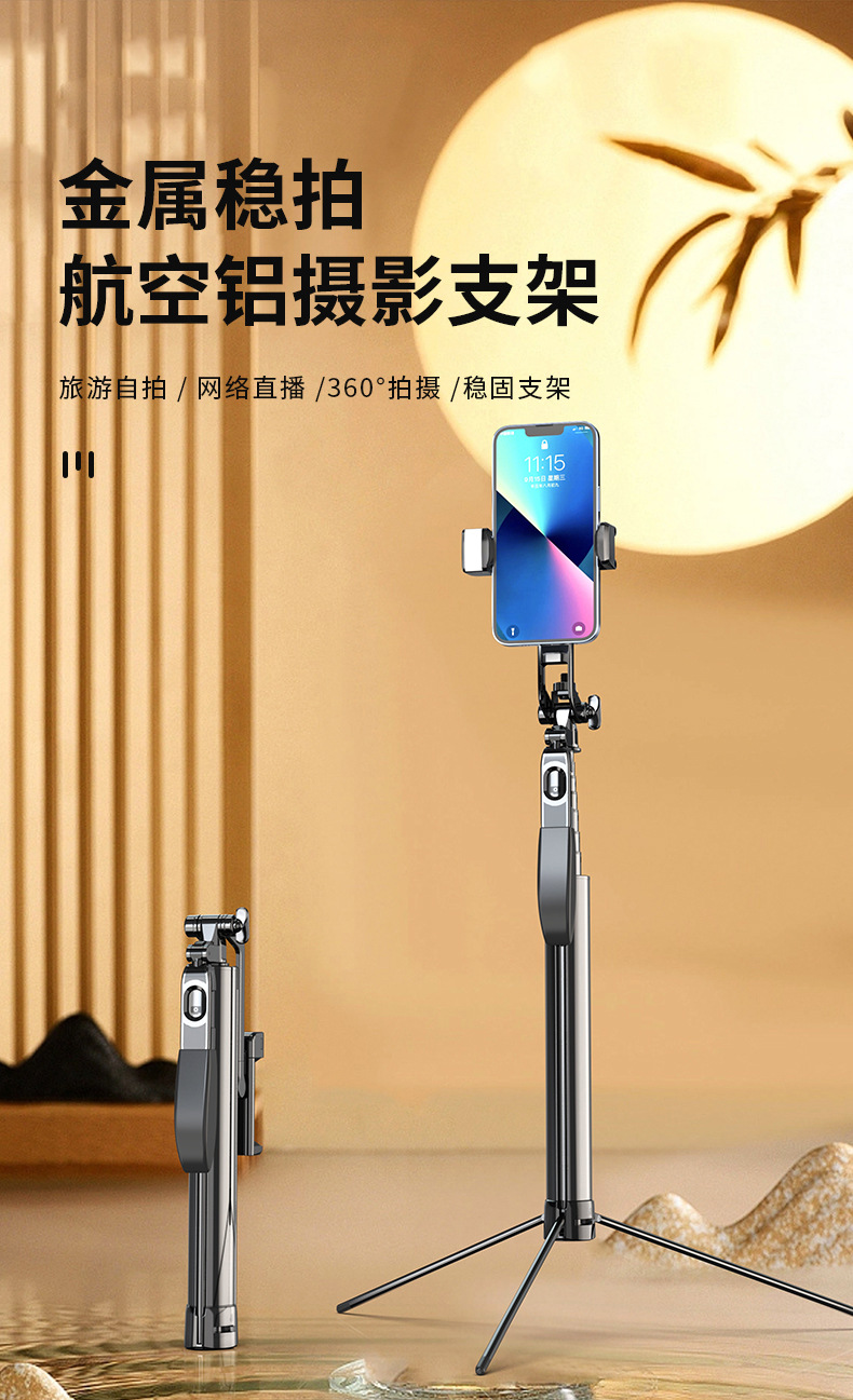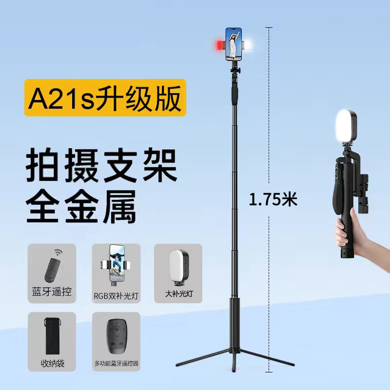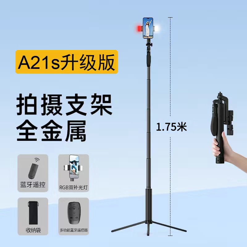 다기능 금속 안티 쉐이크 셀카 스틱 휴대 전화 라이브 3 다리 브래킷 카메라 아티팩트 A21 와 도매 트레몰로