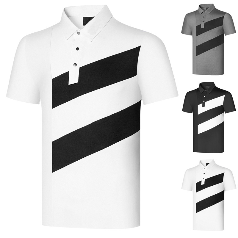 여름 새로운 골프 저지 남자 대비 컬러 스트라이프 티셔츠 짧은 소매 스트레칭 빠른 건조 폴로 셔츠 스포츠 탑스토어 가기