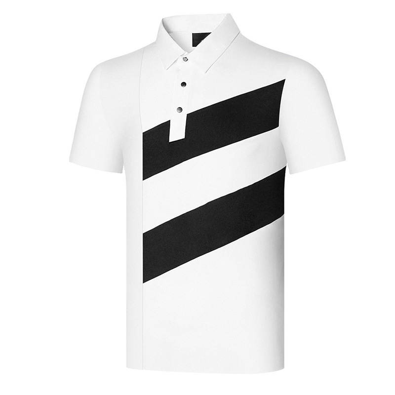여름 새로운 골프 저지 남자 대비 컬러 스트라이프 티셔츠 짧은 소매 스트레칭 빠른 건조 폴로 셔츠 스포츠 탑