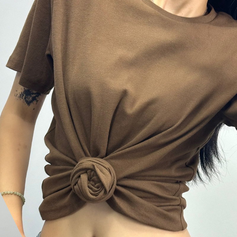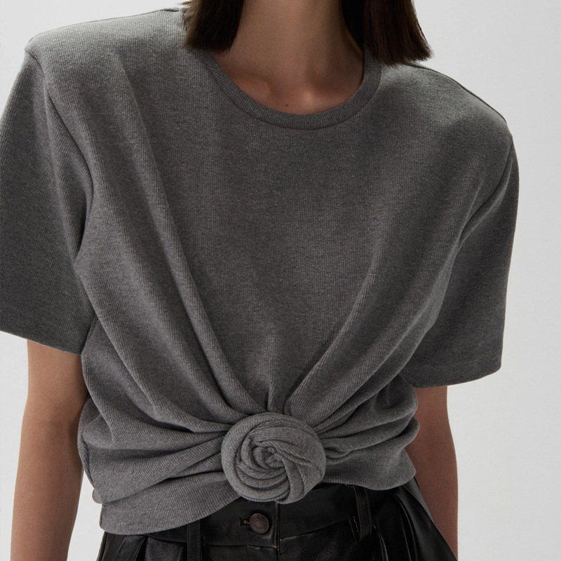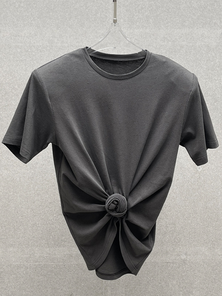 봄철 도시풍 면 소재 풀오버 반팔 라운드넥 루즈핏 여성 티셔츠 원산지 도시 통근