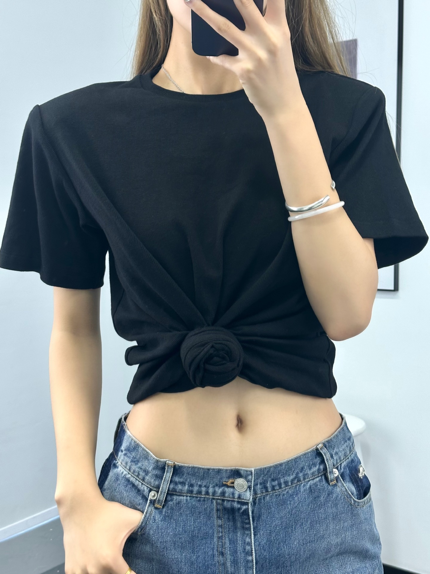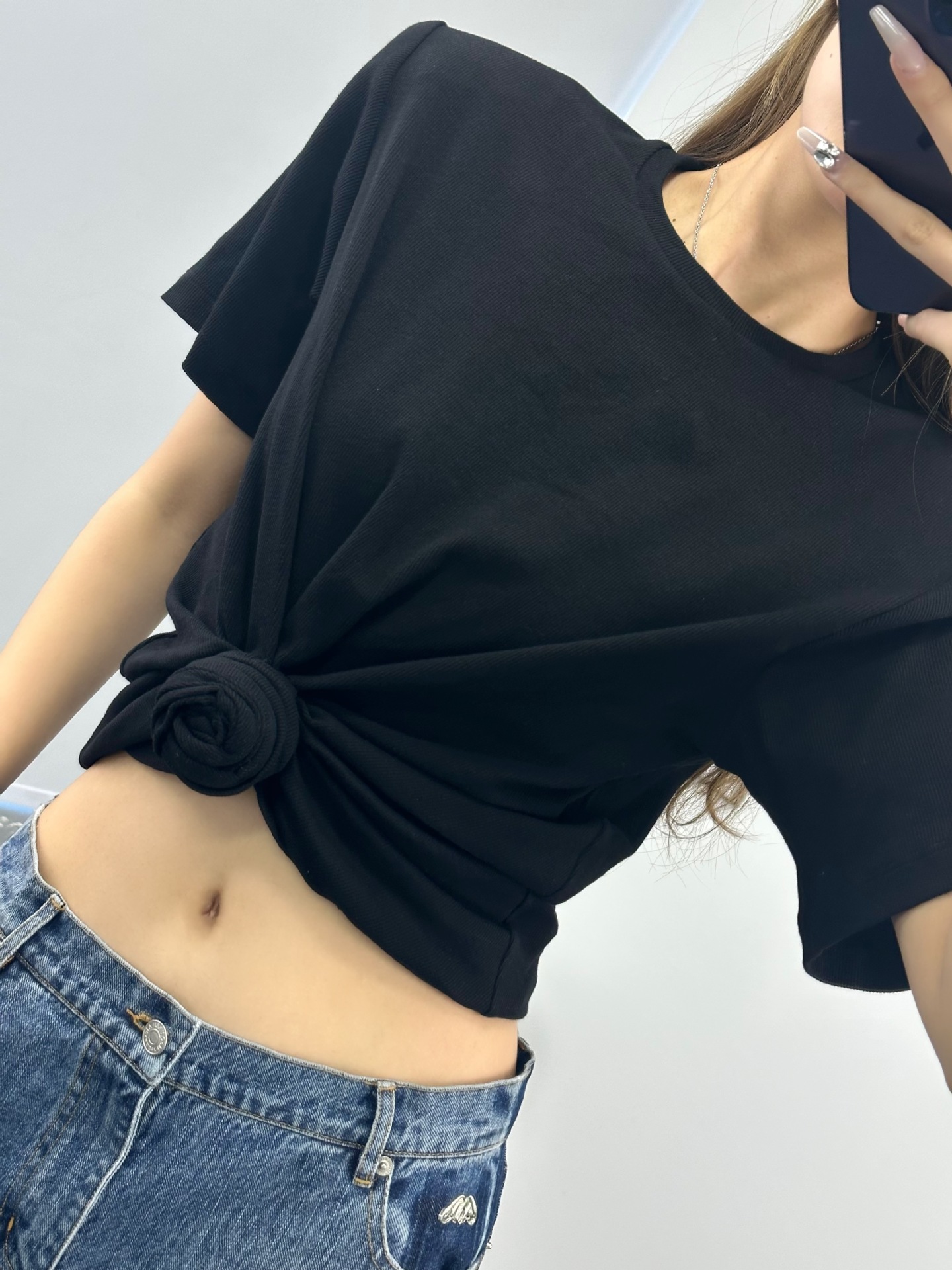 봄철 도시풍 면 소재 풀오버 반팔 라운드넥 루즈핏 여성 티셔츠 원산지 도시 통근스토어 가기