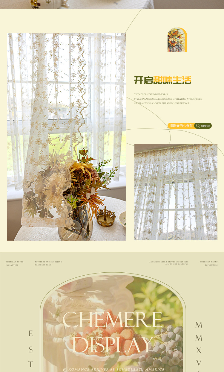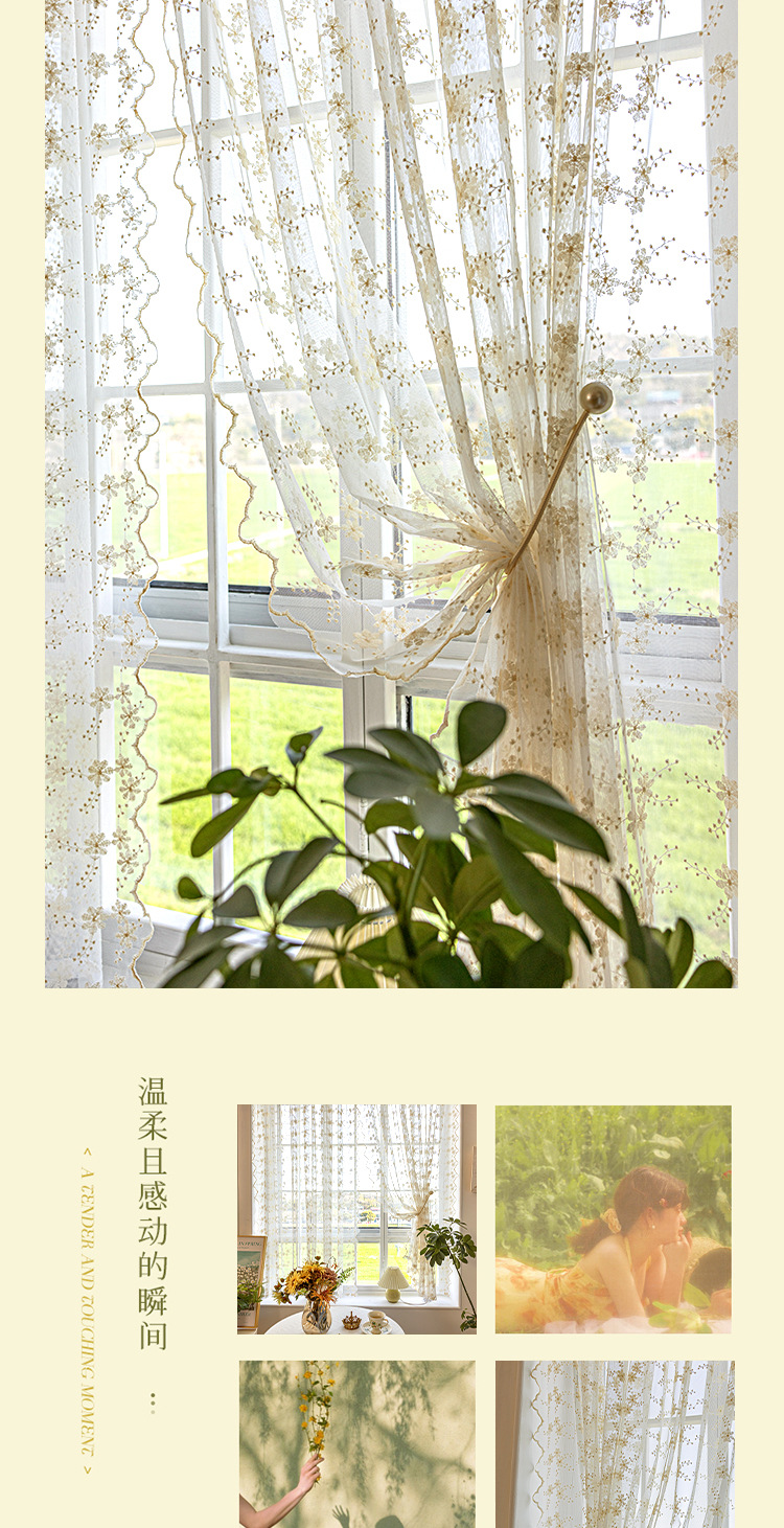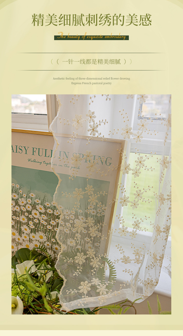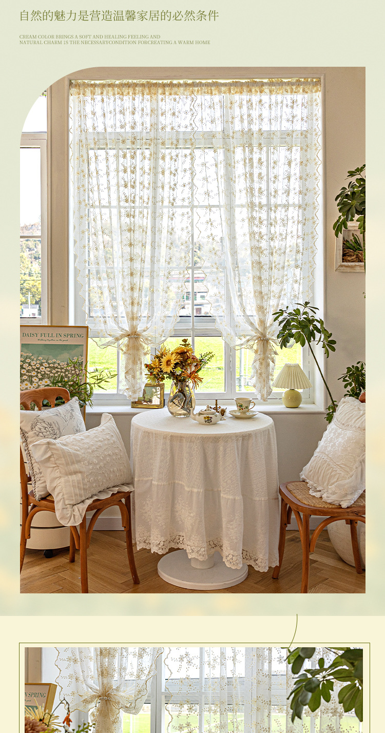 데이지 창 스크린 프렌치 라이트 투명 유지색 커튼 침실 홈스테이 목가적 스타일 신선한 거즈 커튼 커튼 발코니스토어 가기