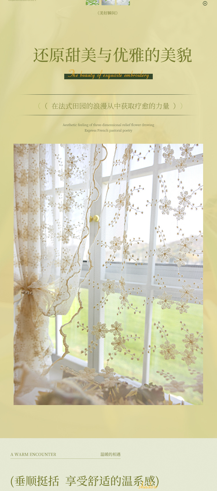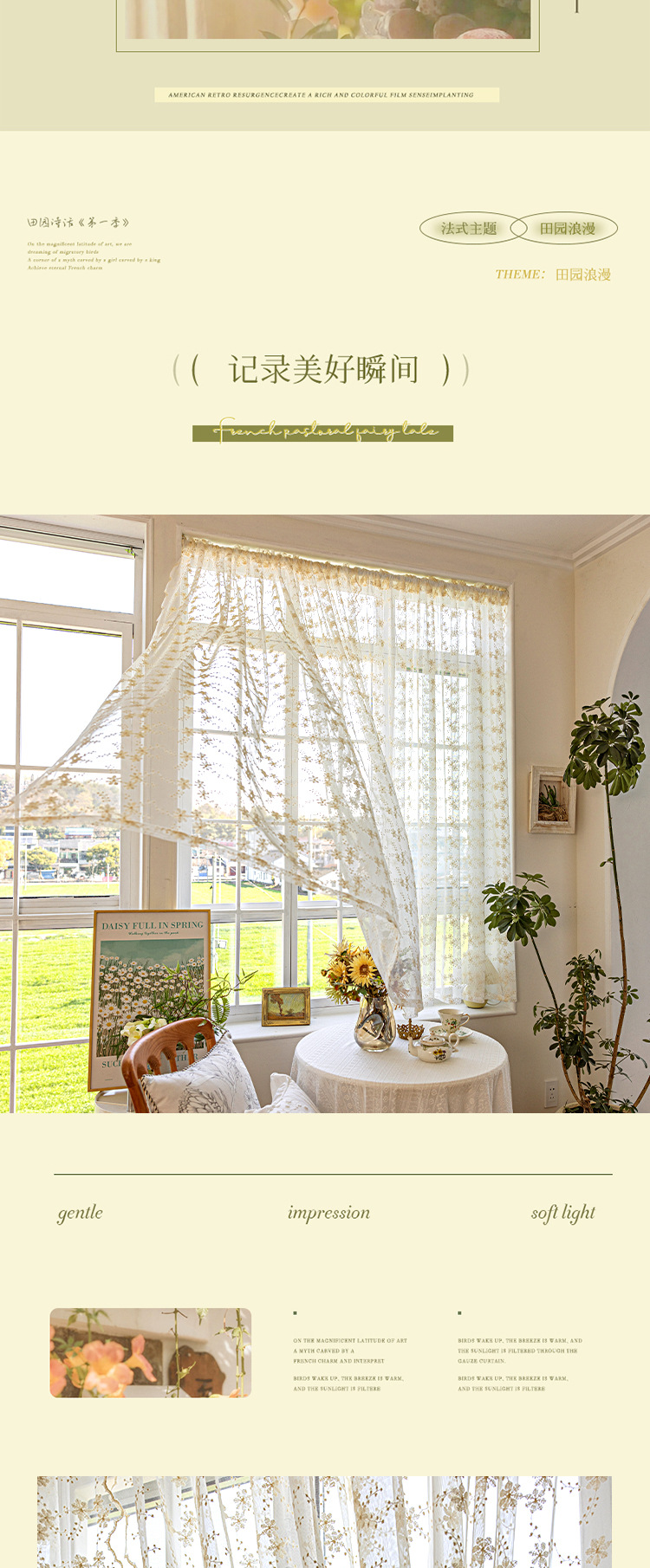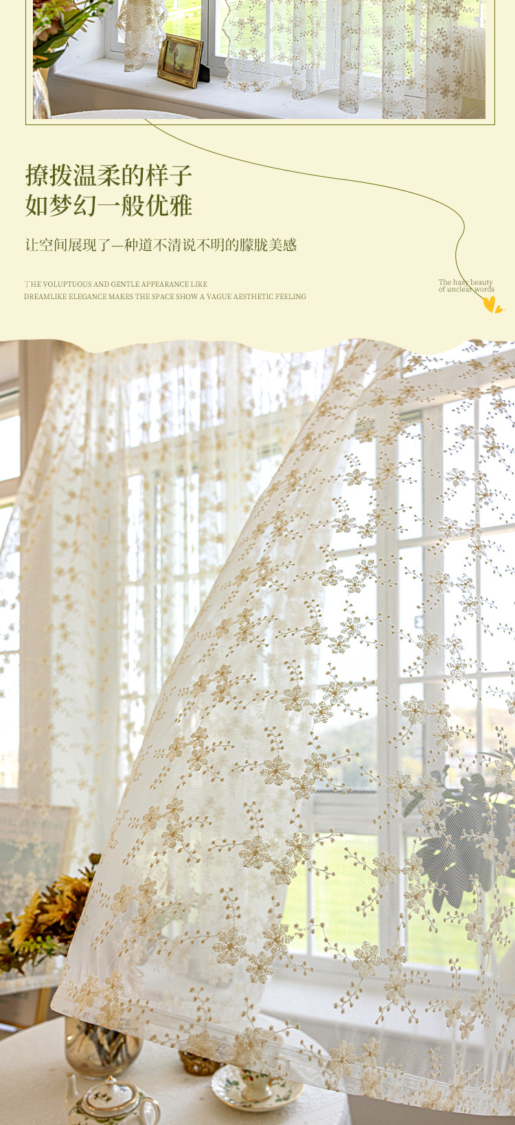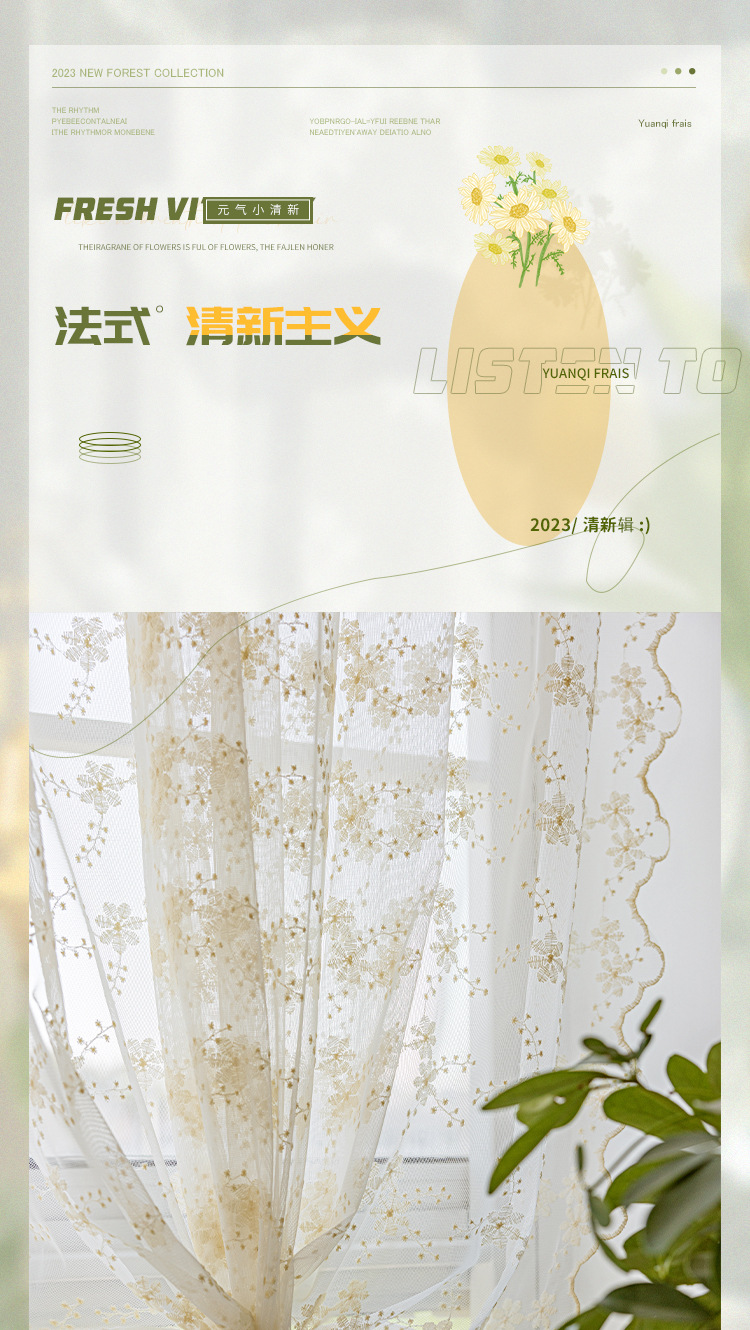 데이지 창 스크린 프렌치 라이트 투명 유지색 커튼 침실 홈스테이 목가적 스타일 신선한 거즈 커튼 커튼 발코니스토어 가기