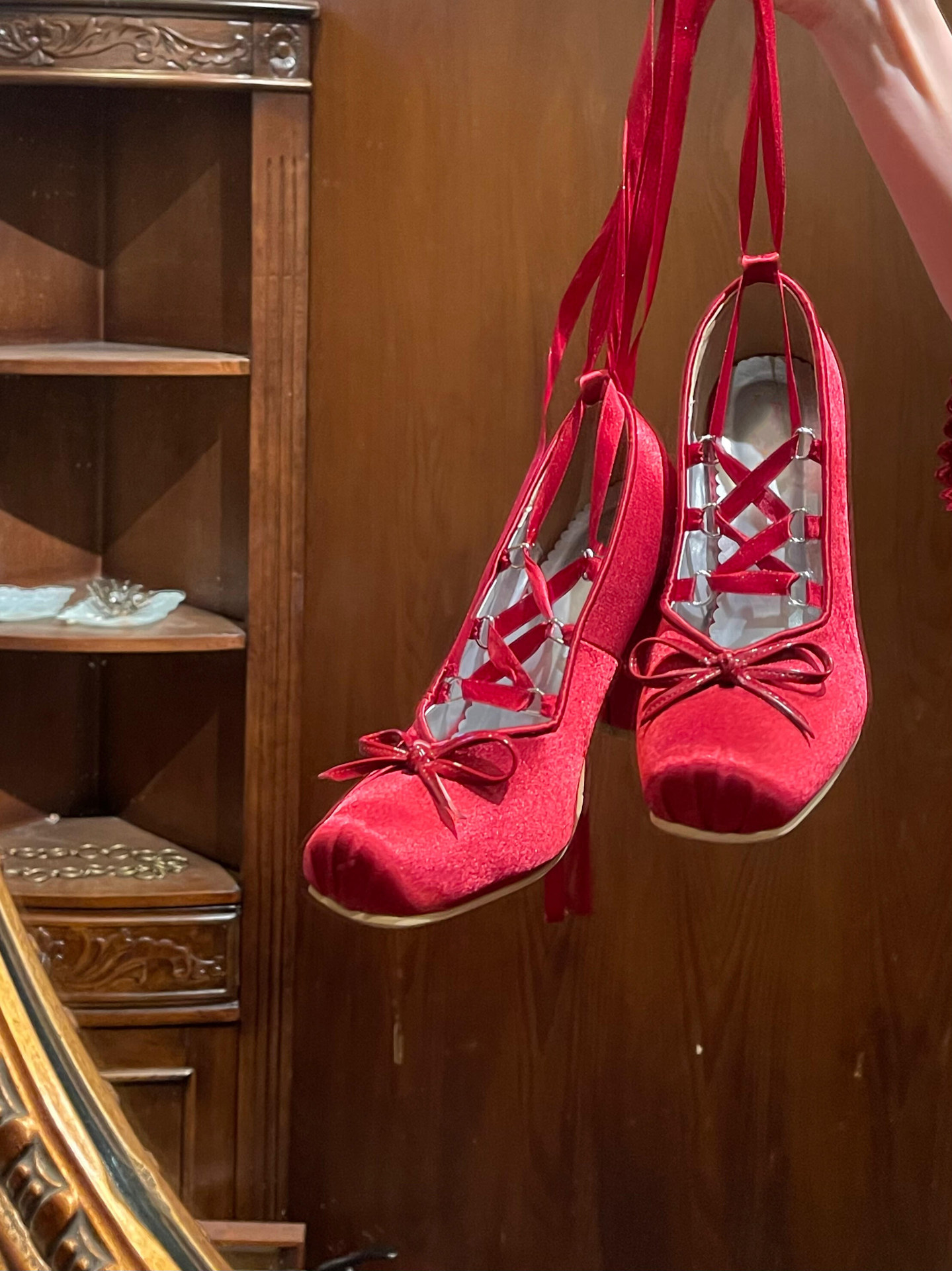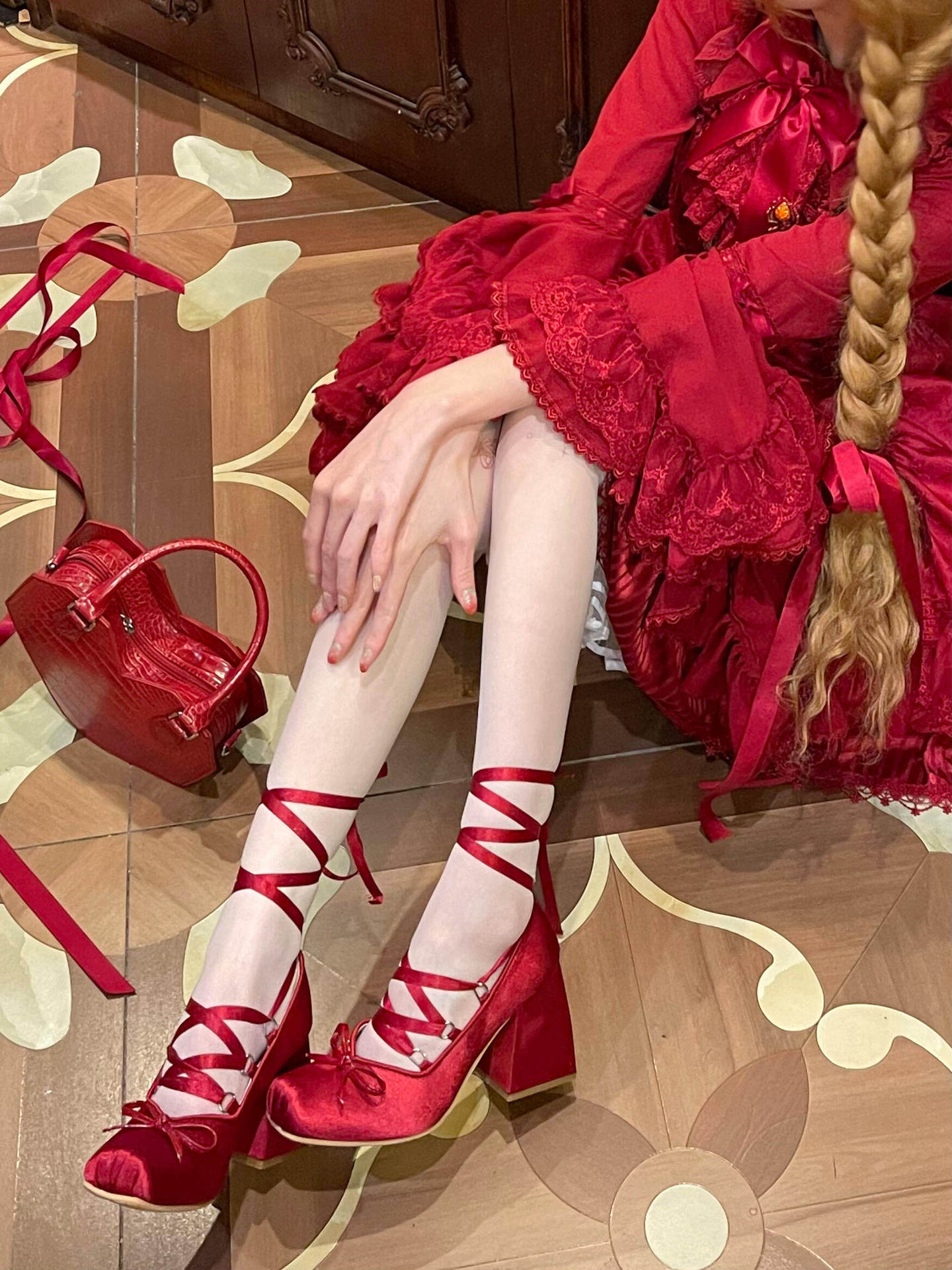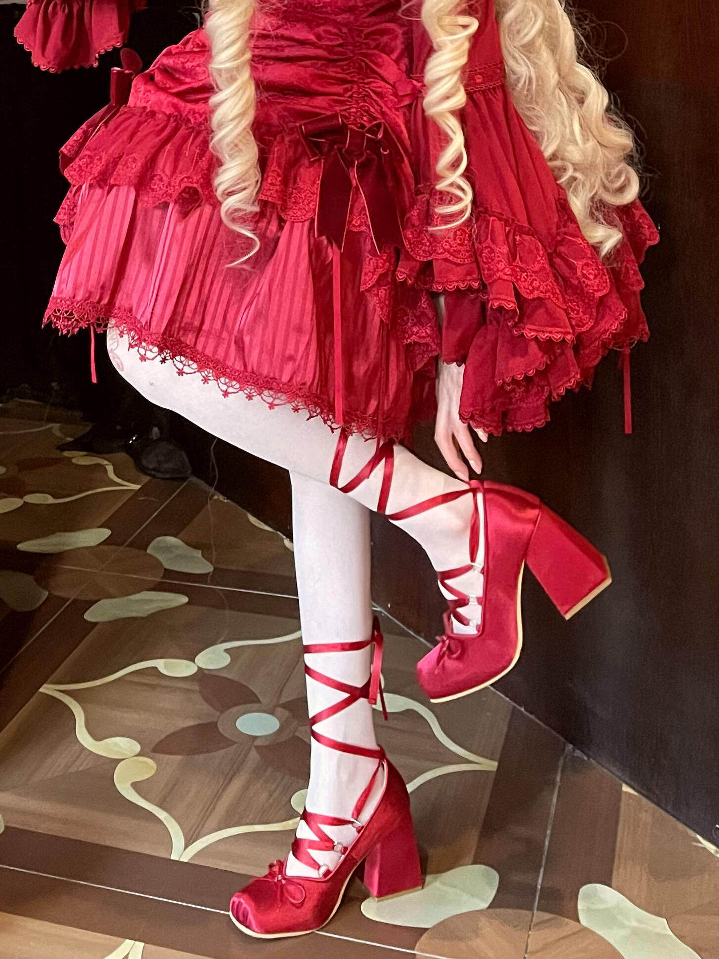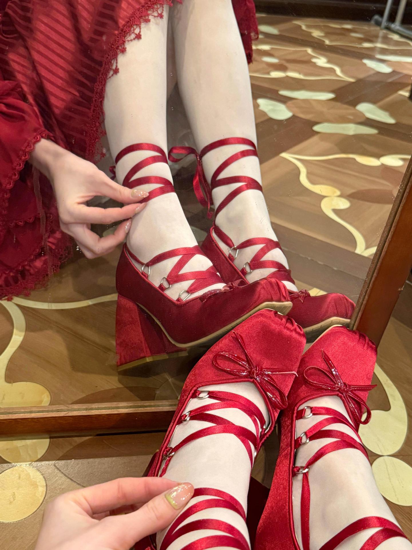 스팟 발레 스타일 패셔너블한 하이힐, 크로스 스트랩 메리제인 프렌치 새틴 리본 로리타스토어 가기