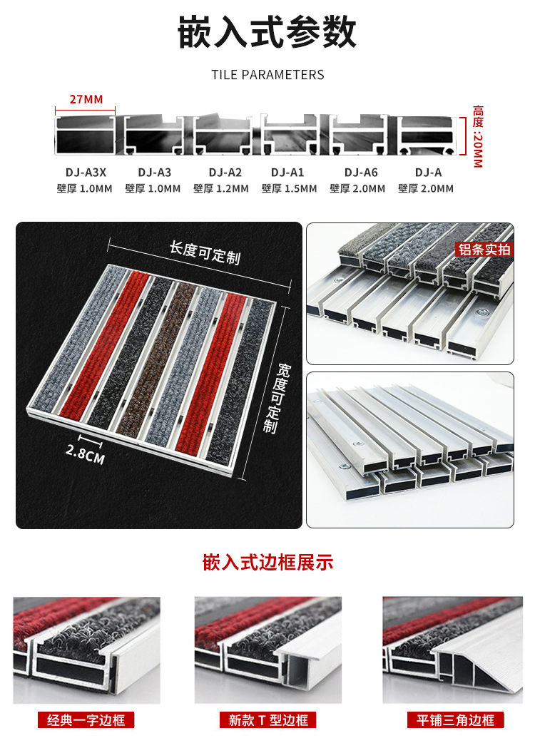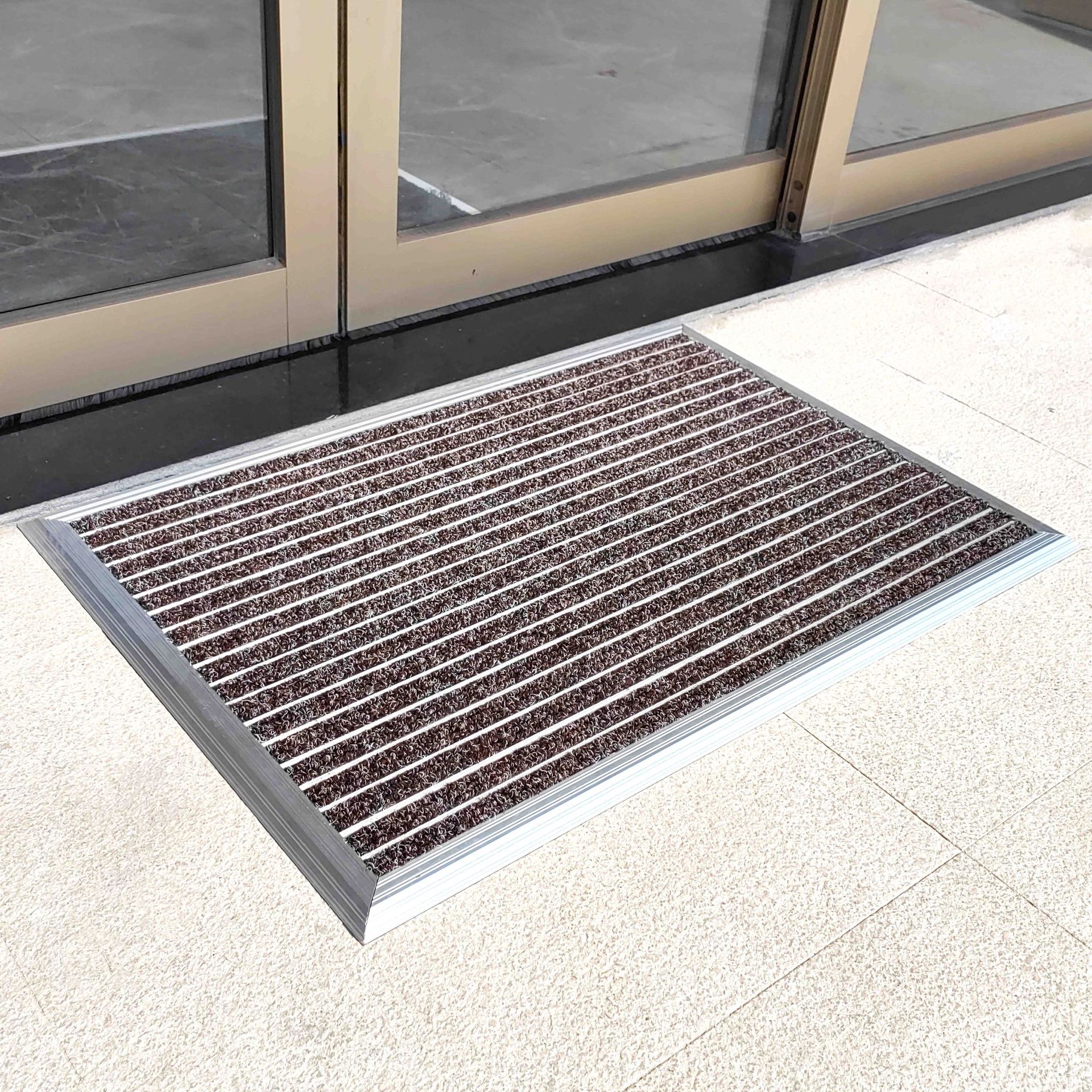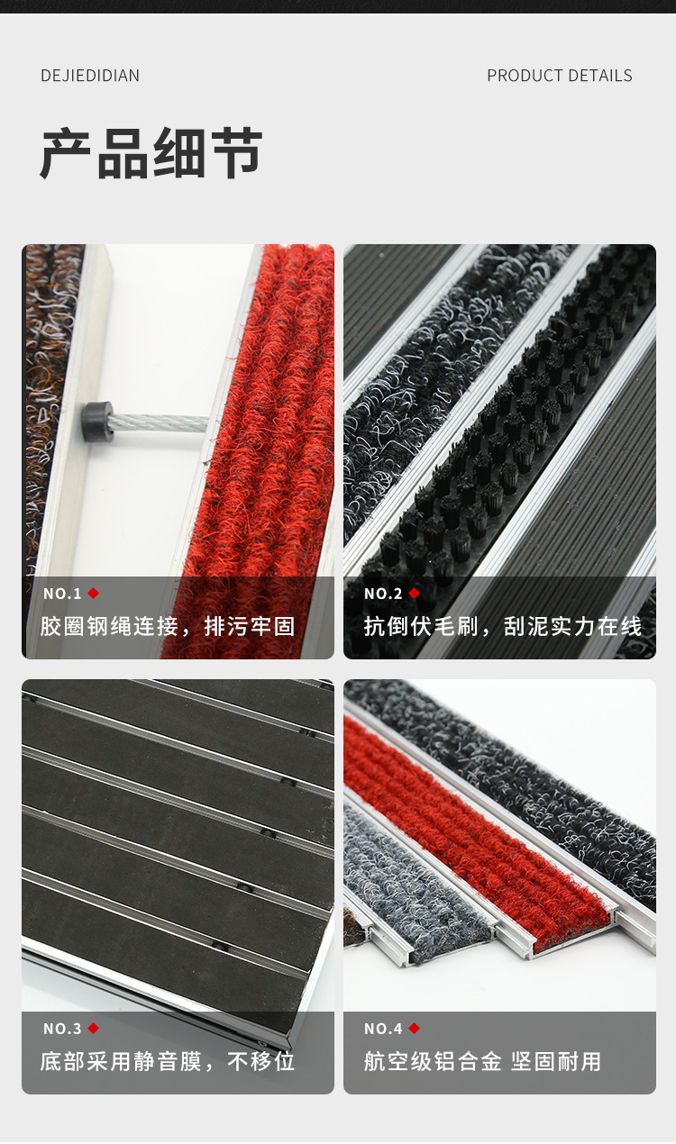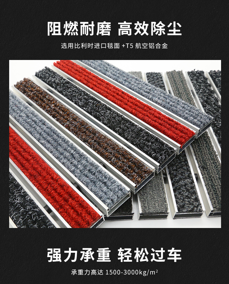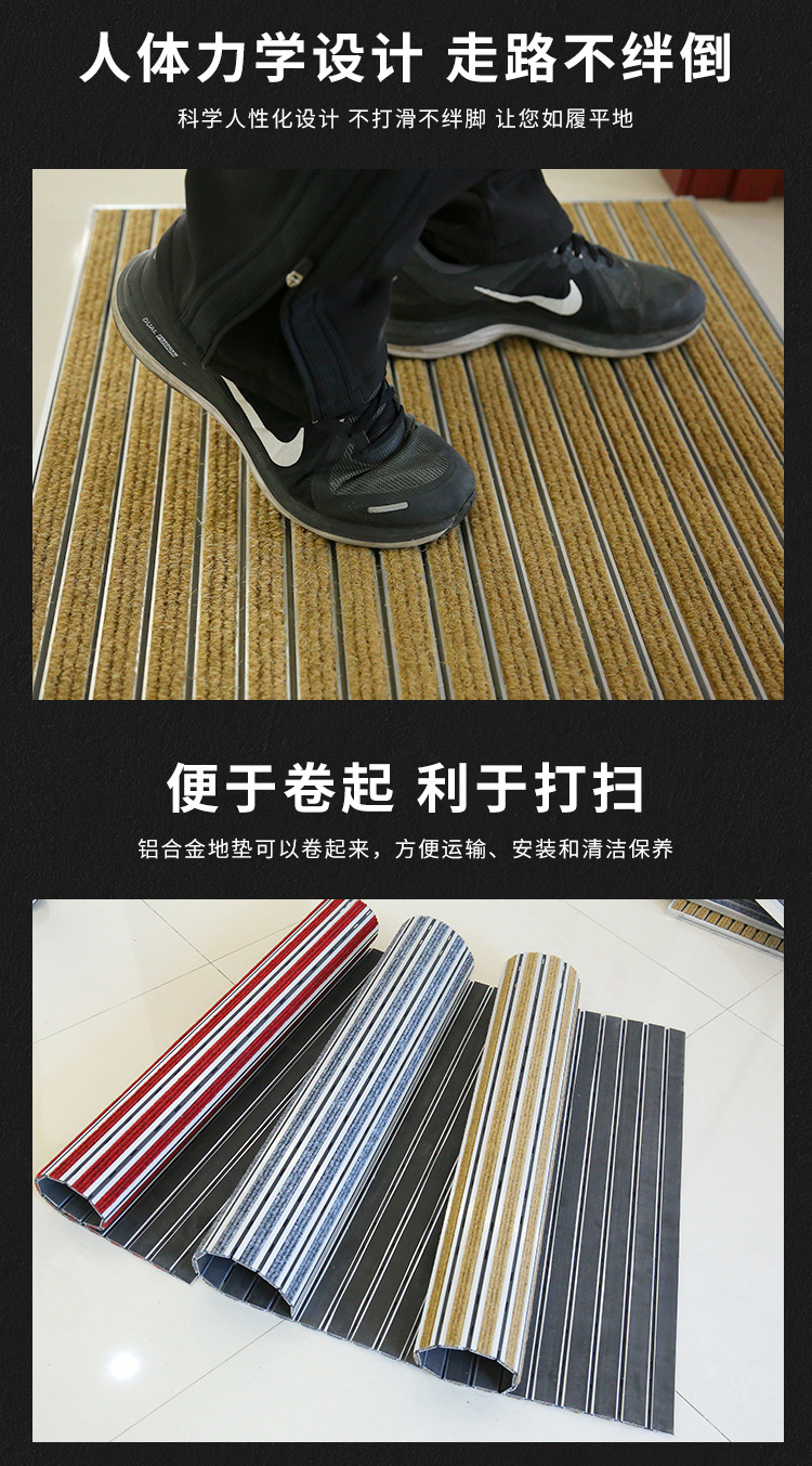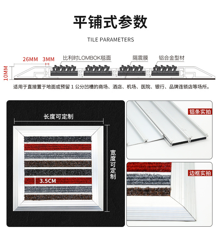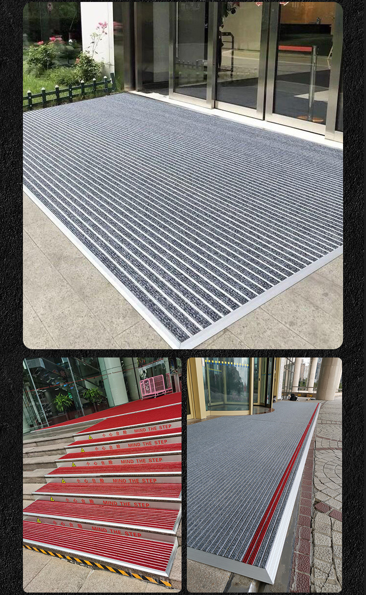 맞춤형 로고 플랫형 알루미늄 합금 바닥 매트, 상업용 매장 미끄럼 방지 먼지 제거 바닥 매트, 전체 바닥 커버형 입구 매트