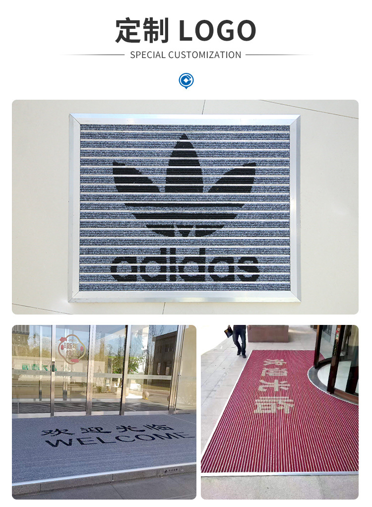 맞춤형 로고 플랫형 알루미늄 합금 바닥 매트, 상업용 매장 미끄럼 방지 먼지 제거 바닥 매트, 전체 바닥 커버형 입구 매트스토어 가기