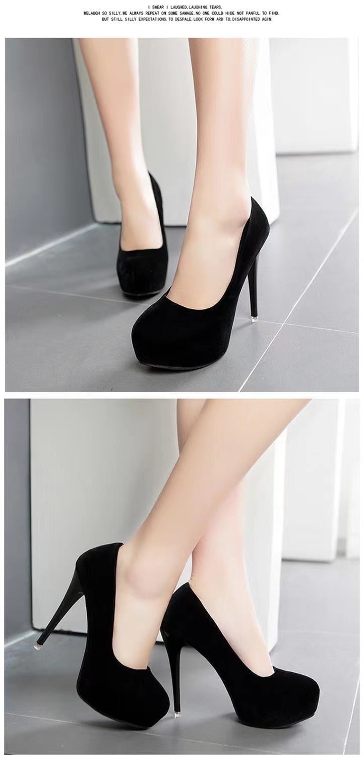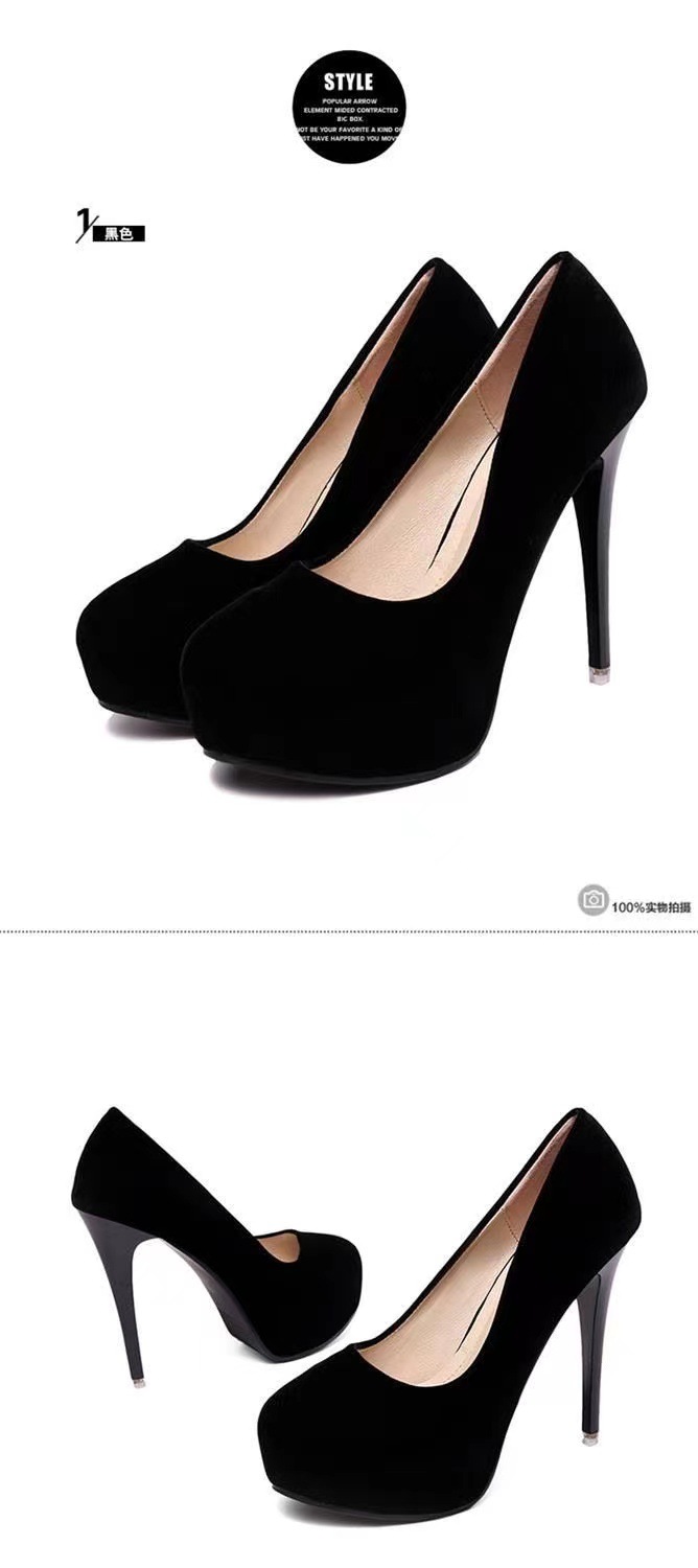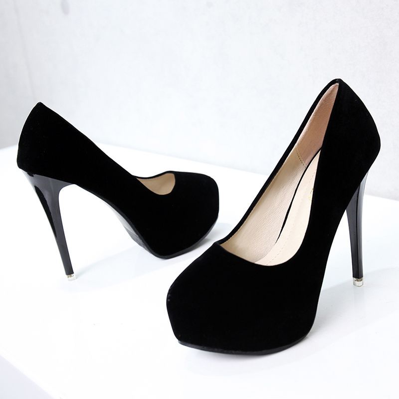 굽 높은 신발 여성용 스틸레토 플랫폼 라운드 헤드 블랙 스웨이드 12cm 유럽과 미국 패션 나이트 클럽 신발스토어 가기
