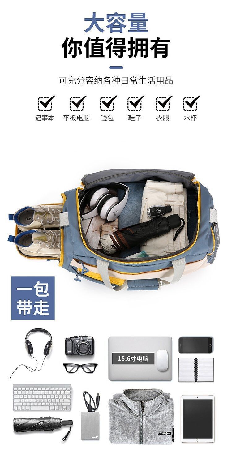 만웨이의 새로운 배색 피트니스 가방, 건식 및 습식 분리, 대용량 36-55L, 옥스포드 천 요가 여행 가방