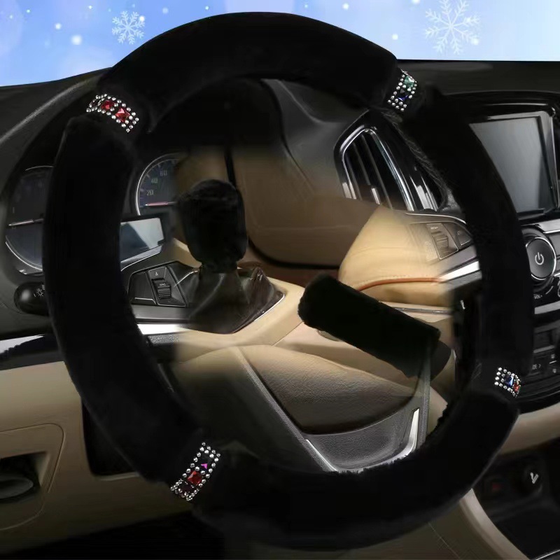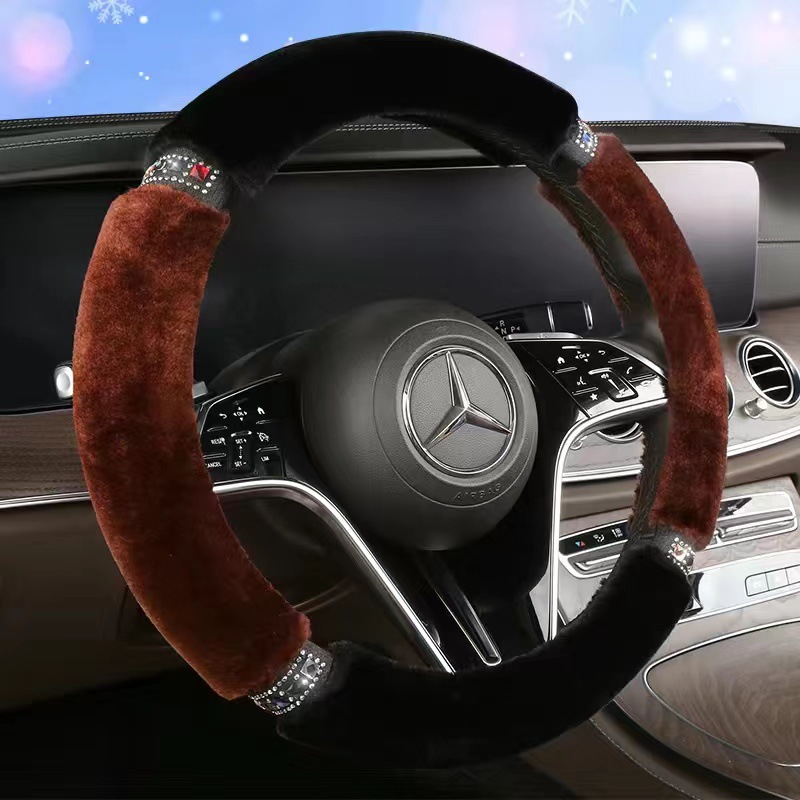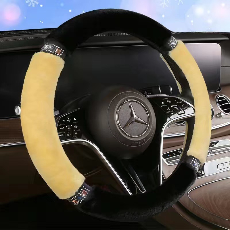 자동차 겨울 미끄럼 방지 플러시 따뜻한 스티어링 휠 커버 남성과 여성의 내마모성 패션 유니버설 자동차 핸들 커버스토어 가기