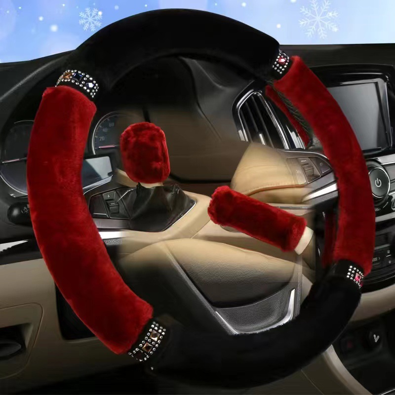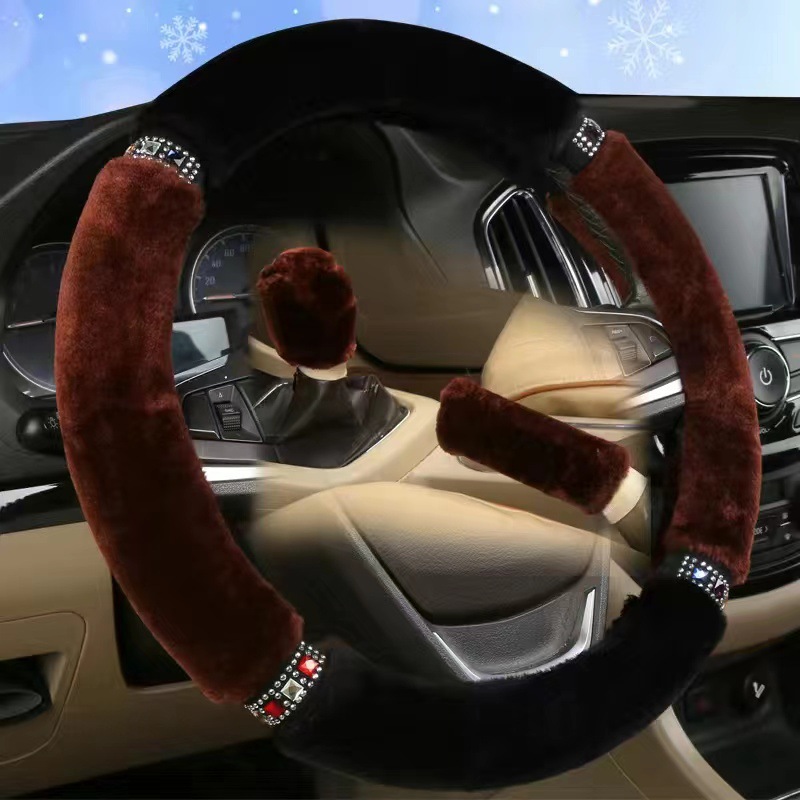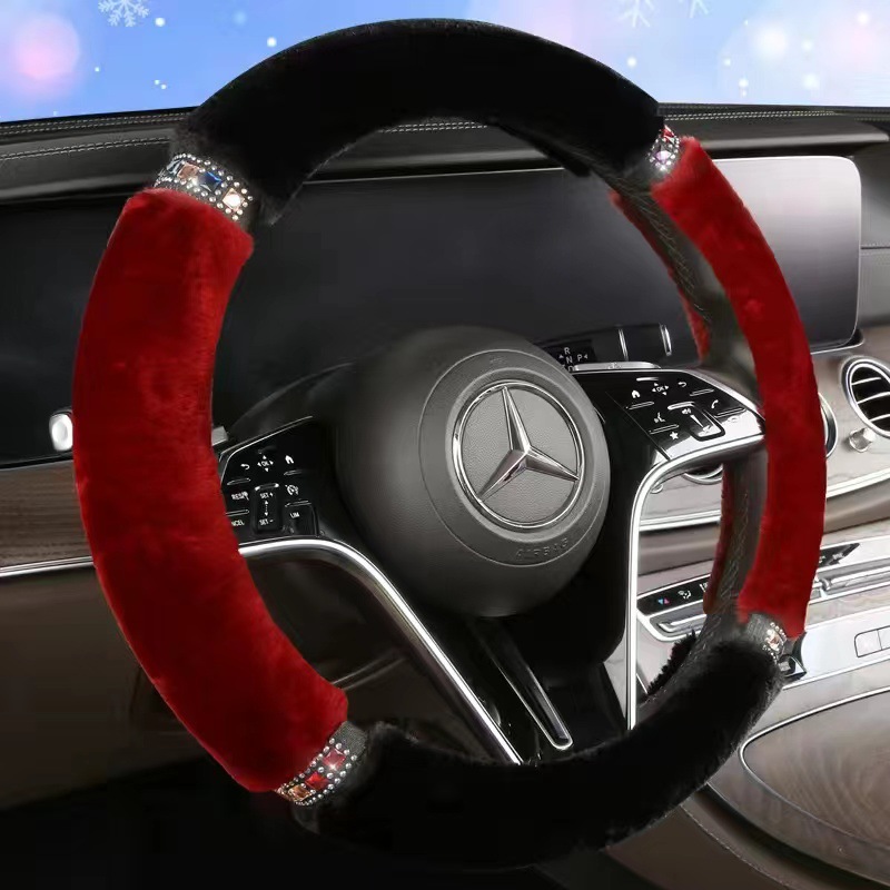 자동차 겨울 미끄럼 방지 플러시 따뜻한 스티어링 휠 커버 남성과 여성의 내마모성 패션 유니버설 자동차 핸들 커버