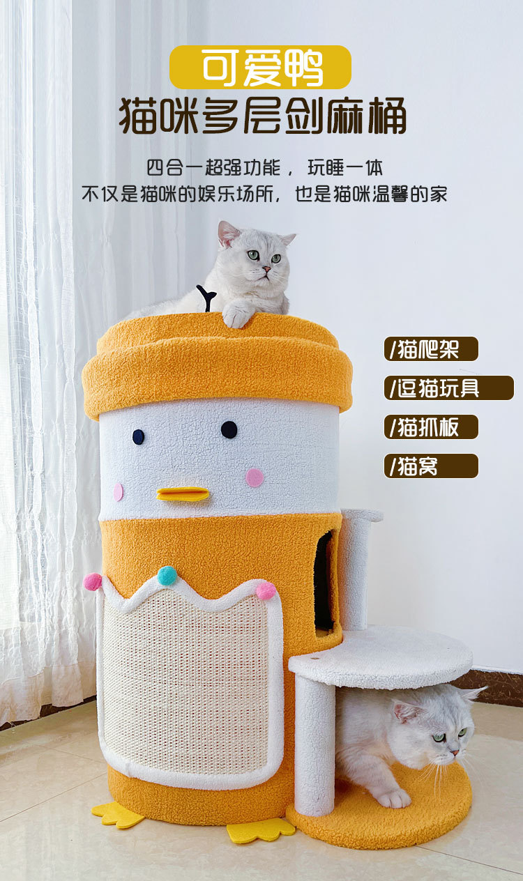 • 귀여운 오리 3 층 사이 잘삼 배럴 + 고양이 점프 플랫폼