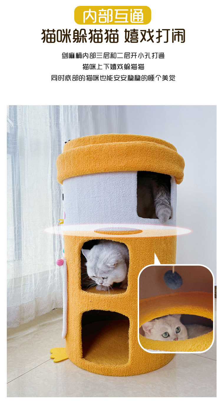 사이잘삼 고양이 스크래치 배럴 고양이 터널 등반 프레임 폐쇄 고양이 집 고양이 나무 통합 고양이 3 층 대형 사이잘삼 배럴 사계절스토어 가기