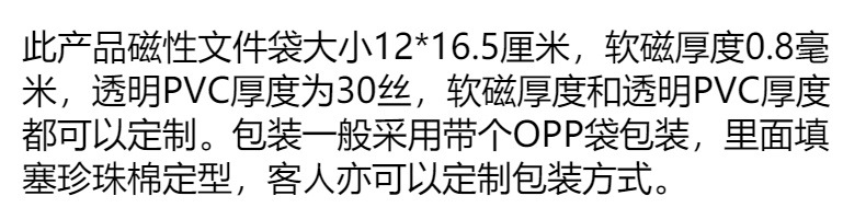 12X16.5cm 투명 PVC 자기 파일 가방 마그네틱 펜 가방 냉장고 저장 가방 가공 도매