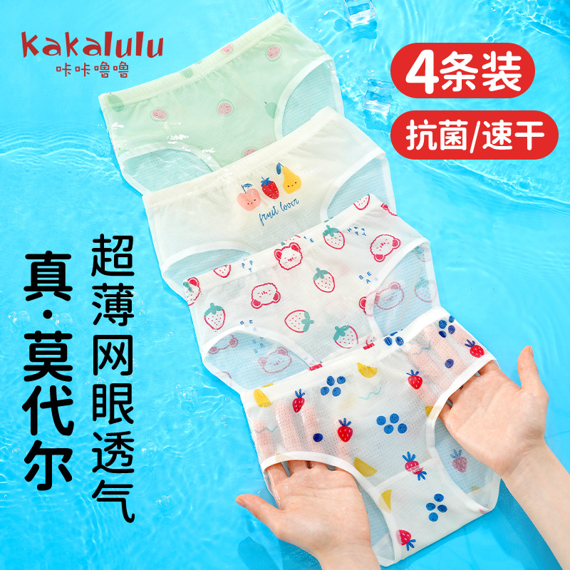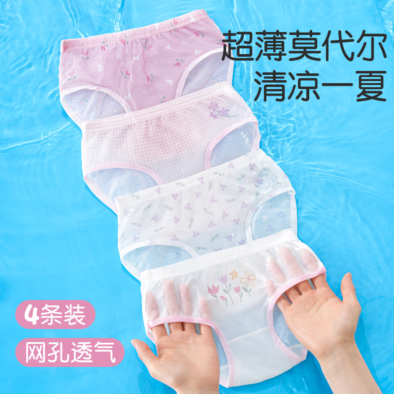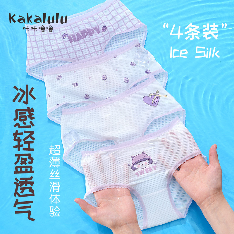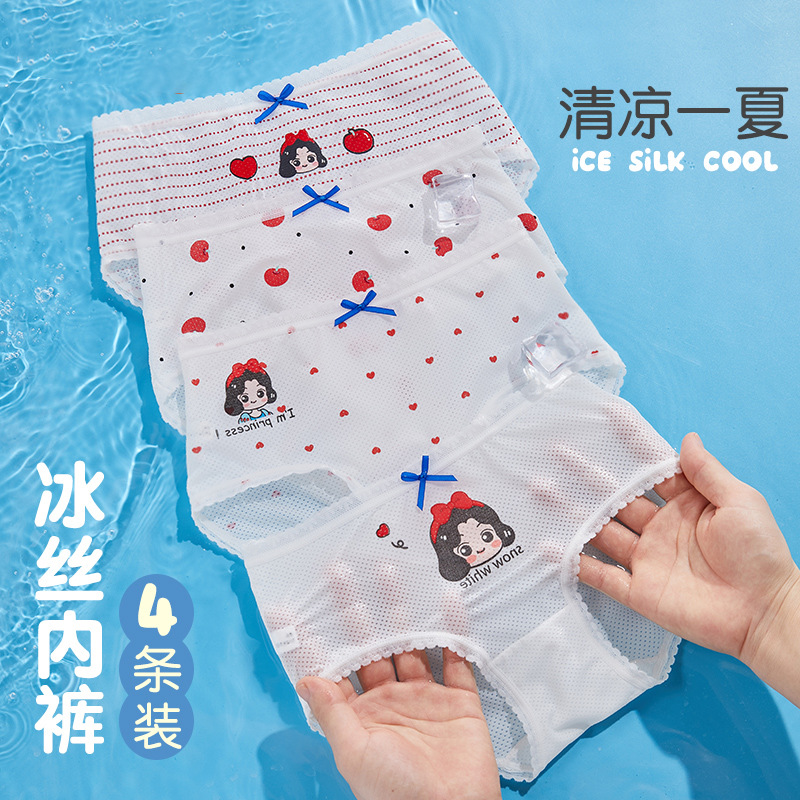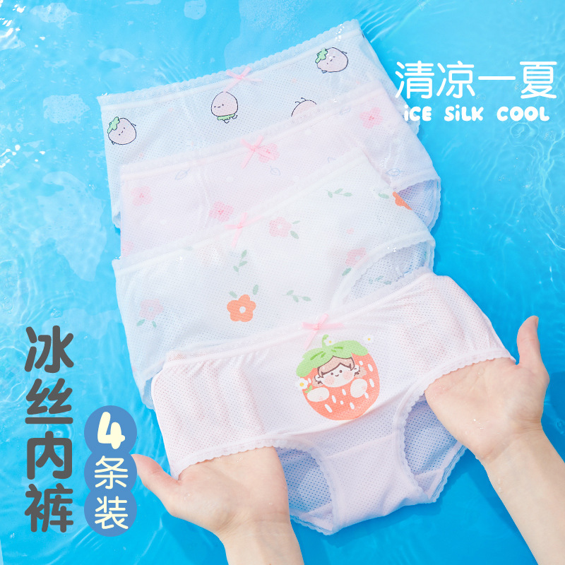 어린이 초박형 아이스 실크 모달 메쉬 소녀 속옷 통기성 브리프 여름 귀여운 인쇄 아기 큰 키즈스토어 가기