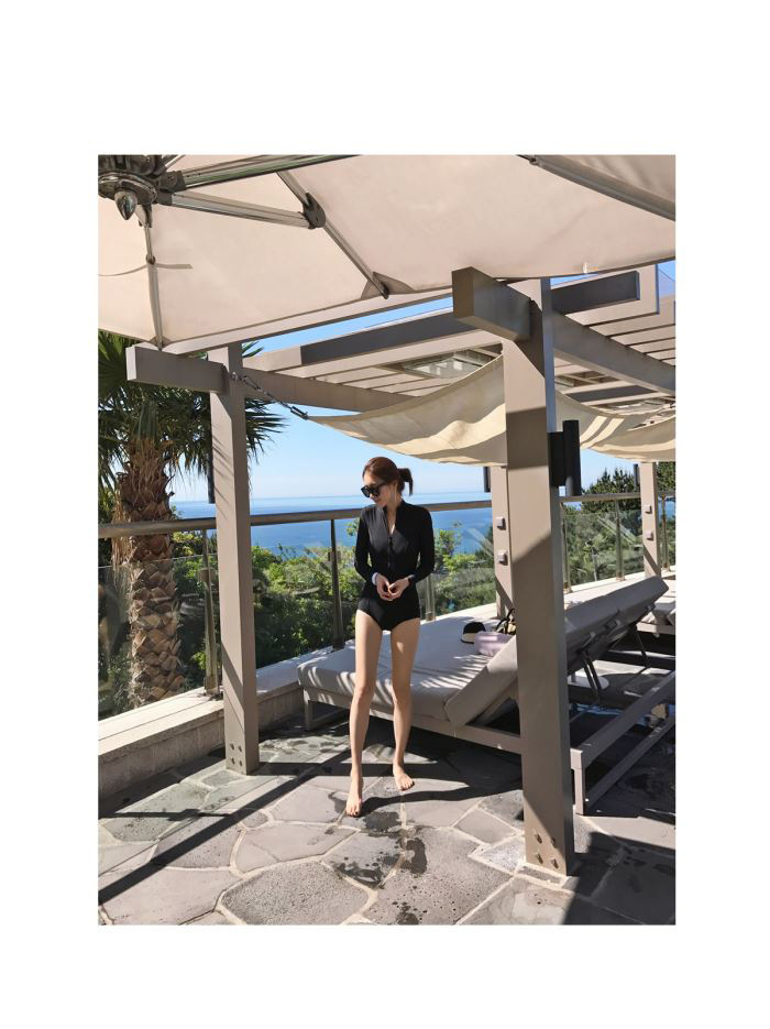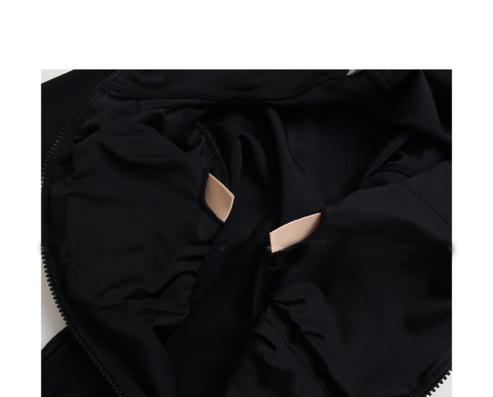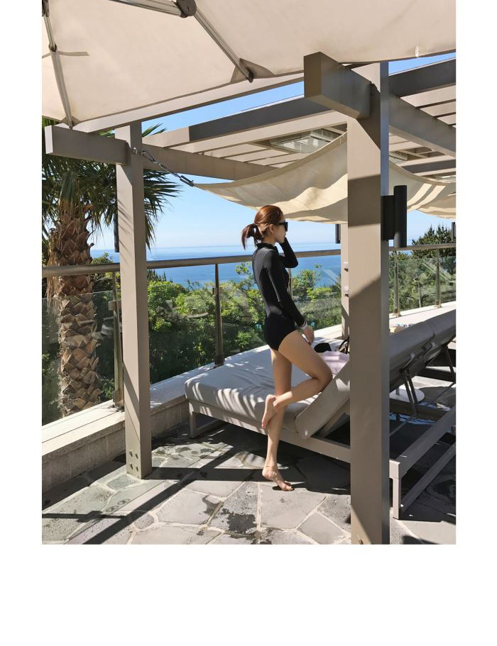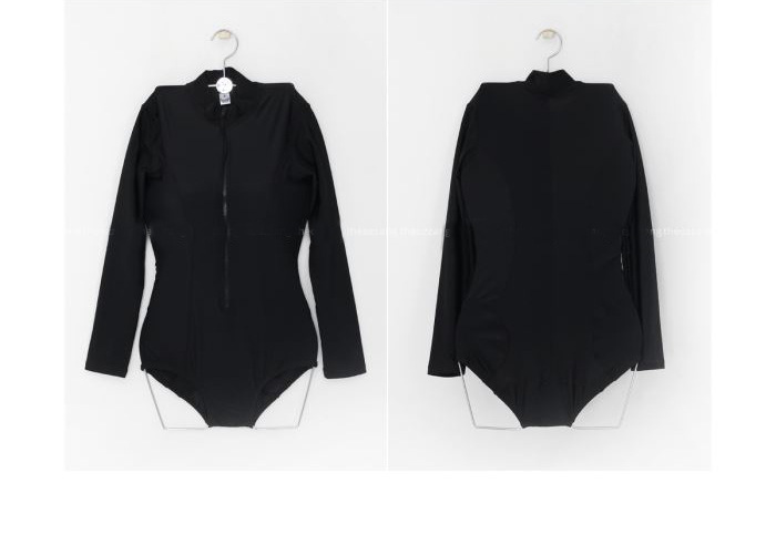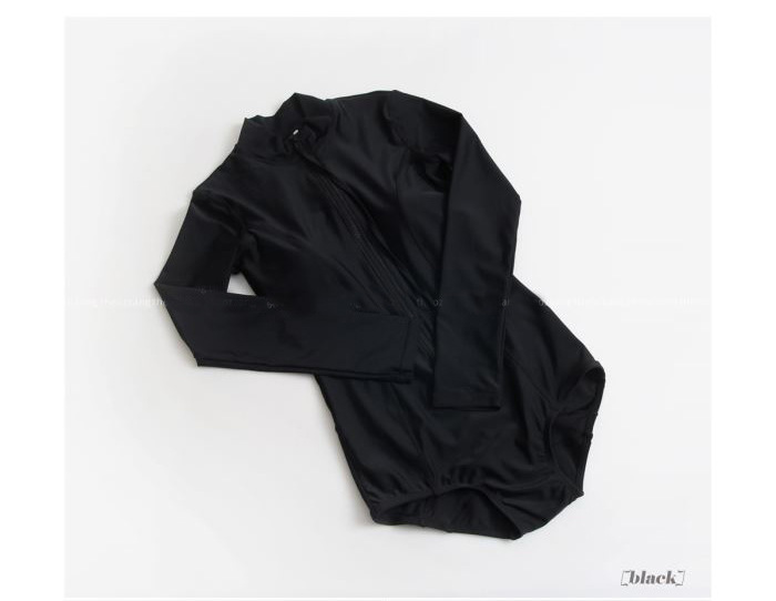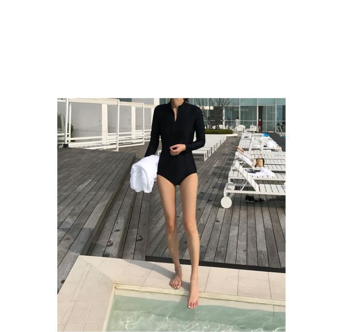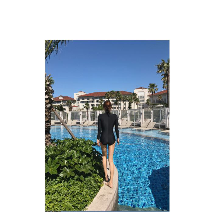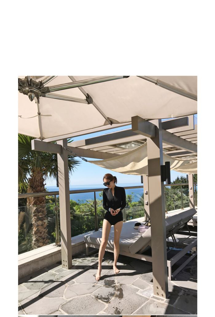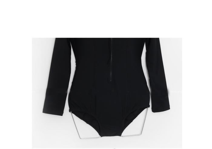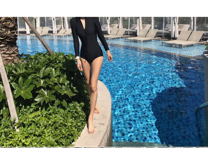 크로스보더 도매 블랙 원피스 레트로 작은 가슴이 배를 가리기 위해 모여 슬림 긴 소매 선 스크린 온천 지퍼 수영복 여성
