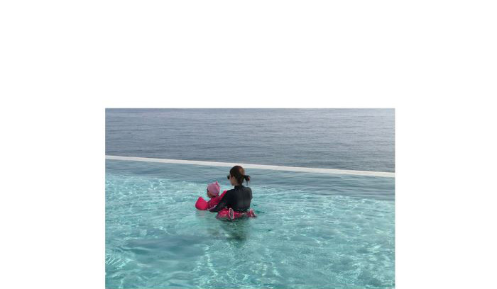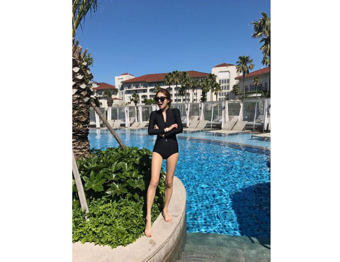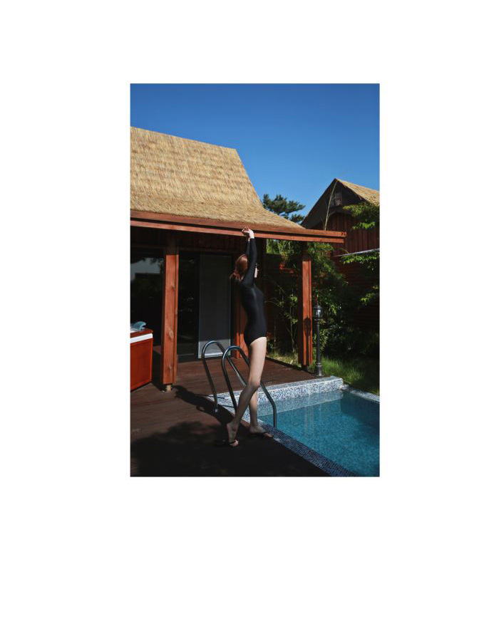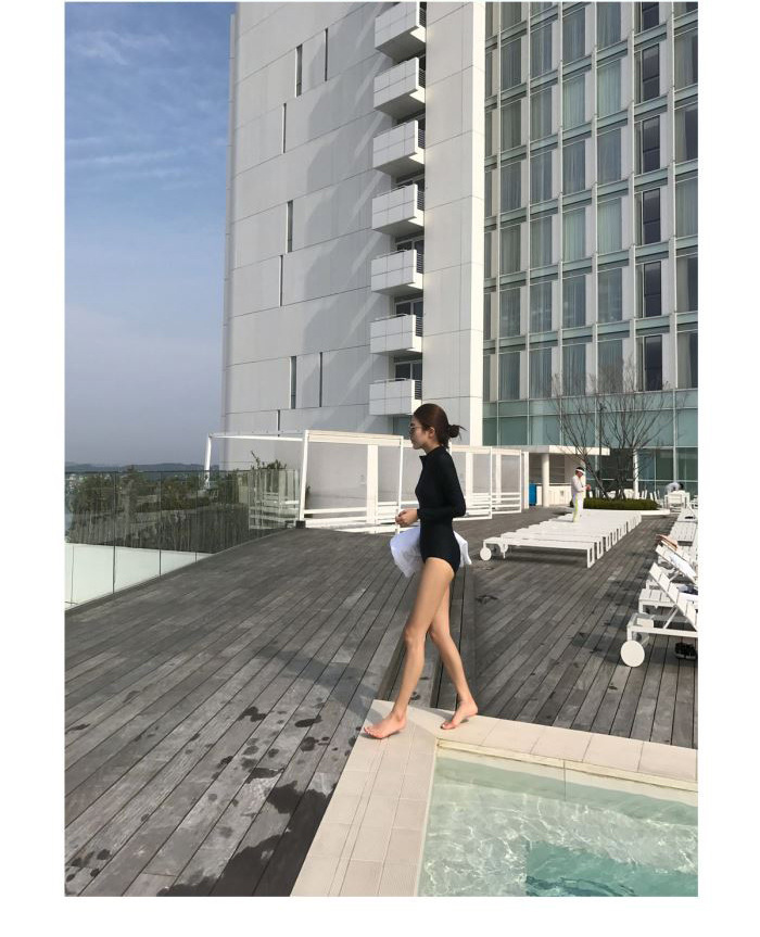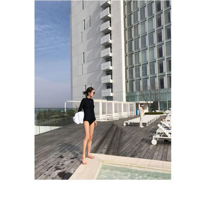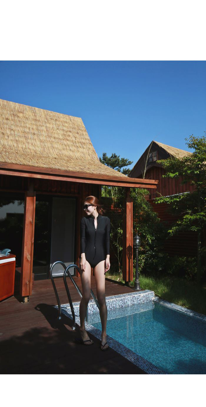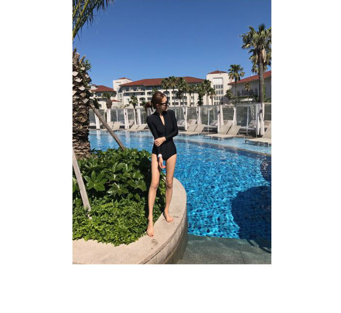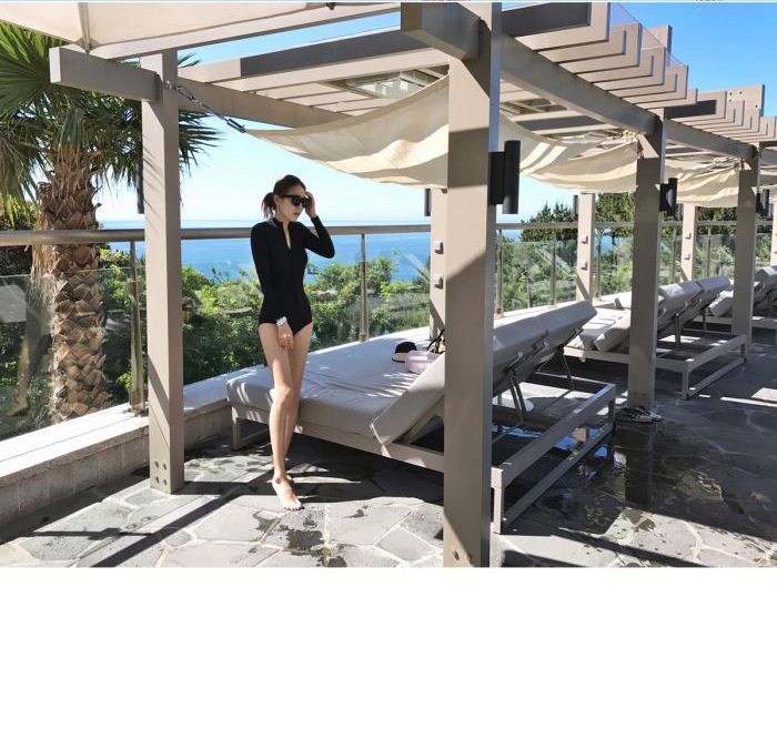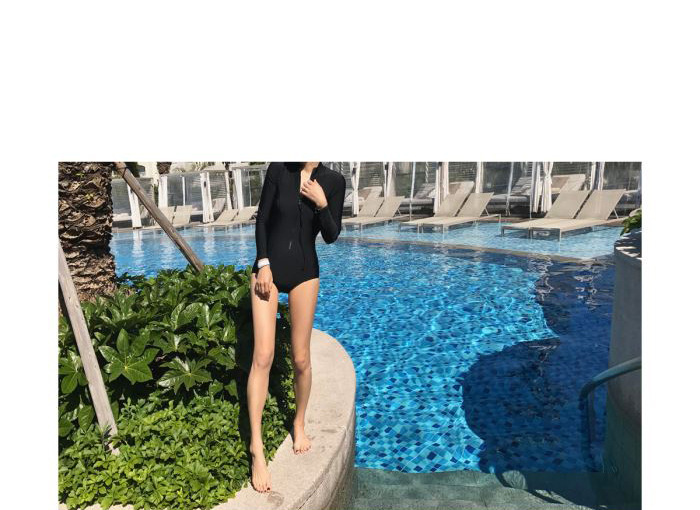 크로스보더 도매 블랙 원피스 레트로 작은 가슴이 배를 가리기 위해 모여 슬림 긴 소매 선 스크린 온천 지퍼 수영복 여성