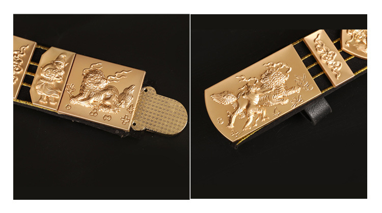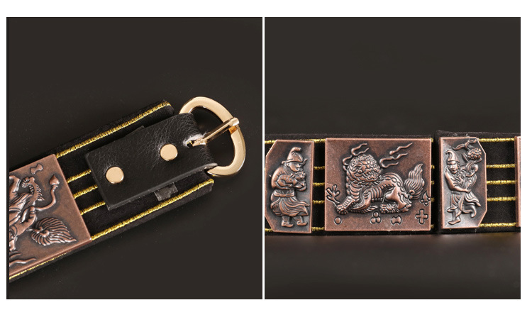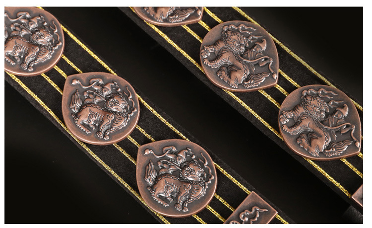 명나라의 모방 사자 야만인 가죽 벨트 사자 야만인 패턴 앰버 벨트 플레이트 군사 장교 허리 Hanfu 벨트 액세서리 재고스토어 가기