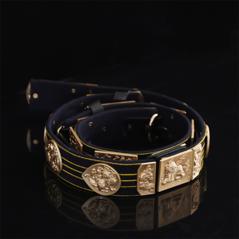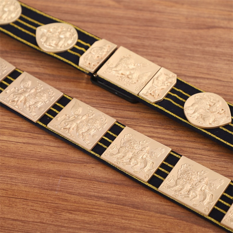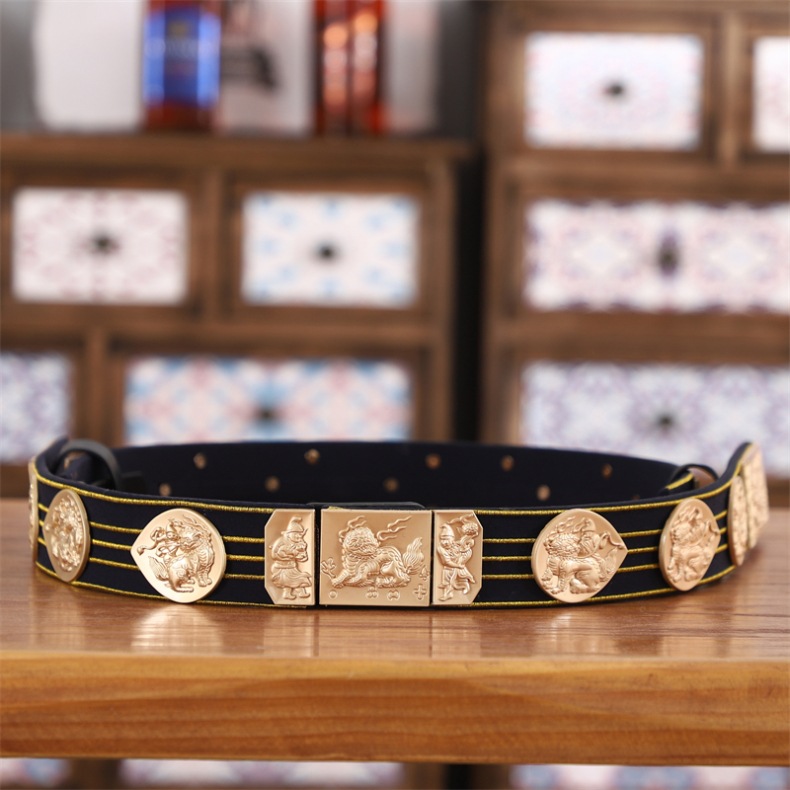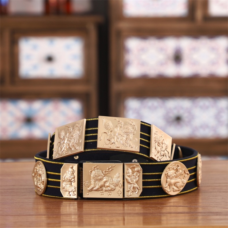 명나라의 모방 사자 야만인 가죽 벨트 사자 야만인 패턴 앰버 벨트 플레이트 군사 장교 허리 Hanfu 벨트 액세서리 재고