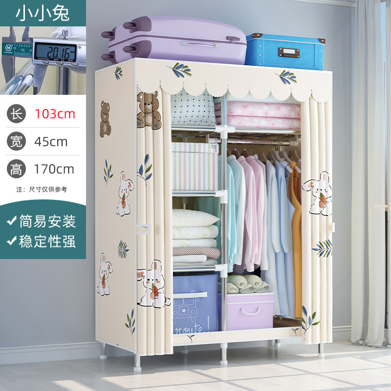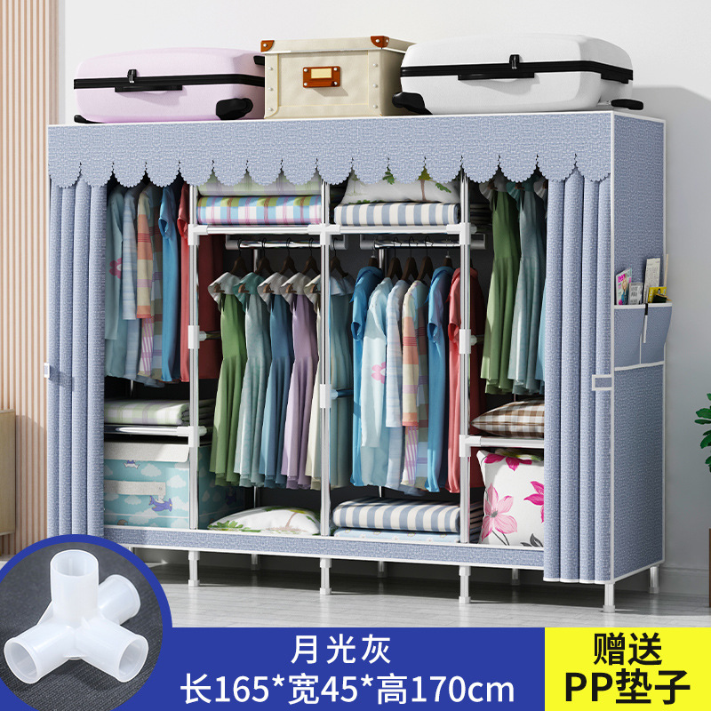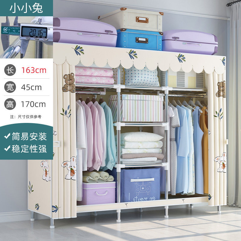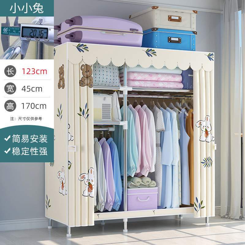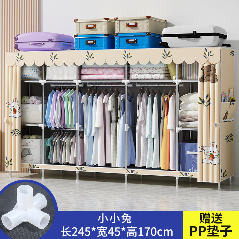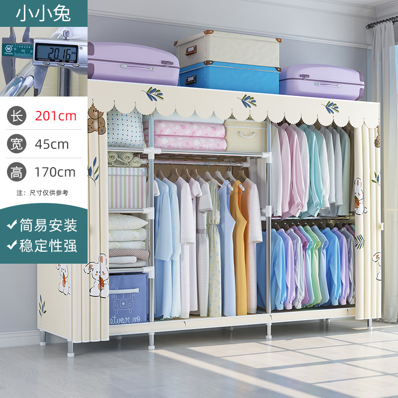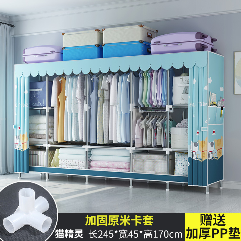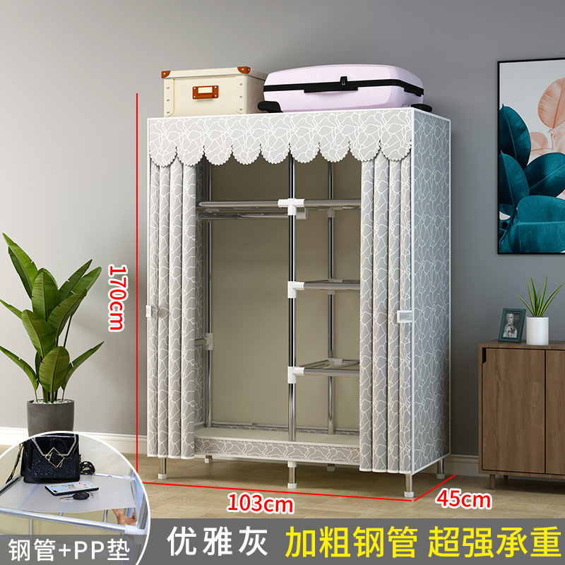 간단한 옷장 홈 굵은 강화 스틸 파이프 천 옷장 침실 조립 옷장 렌탈룸 옷 보관 랙