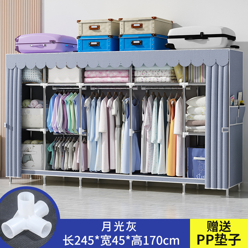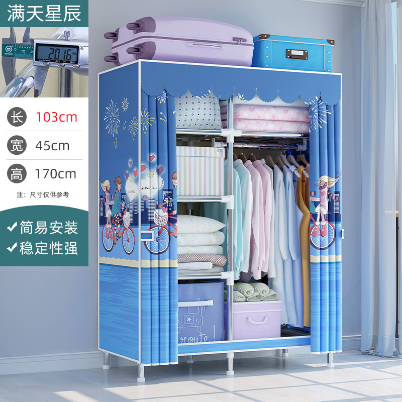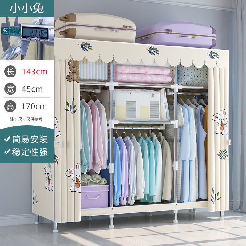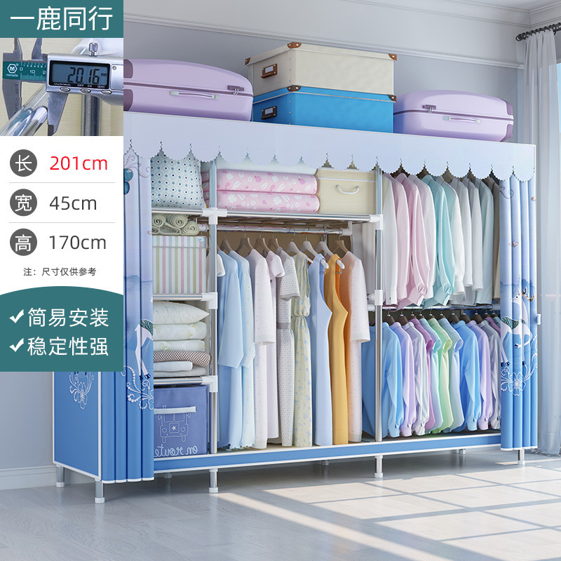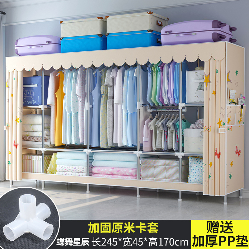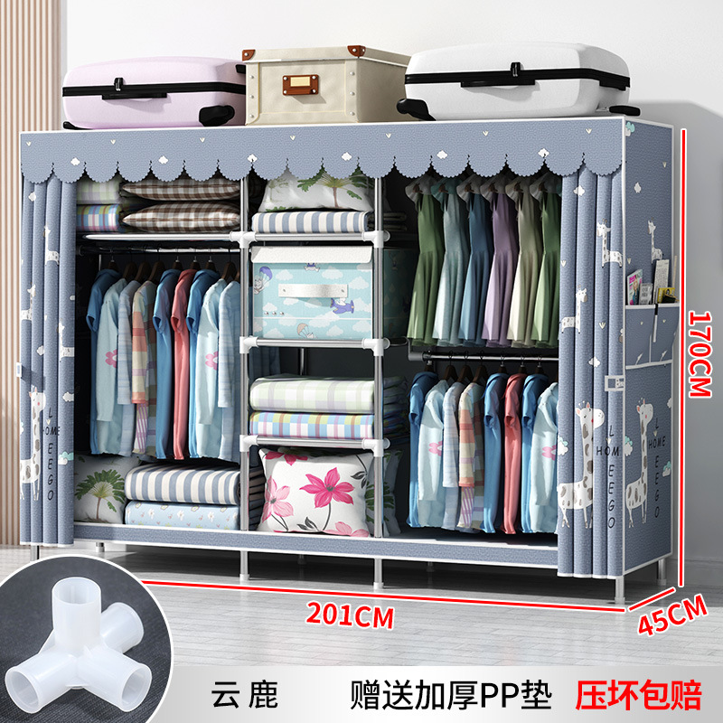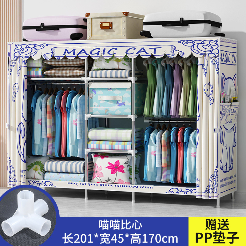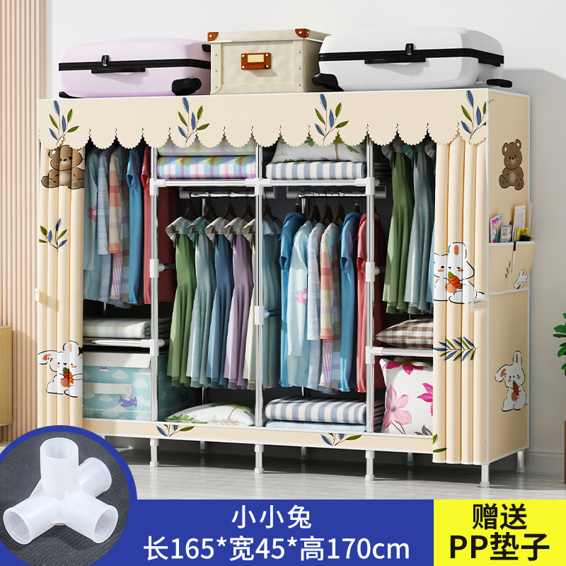 간단한 옷장 홈 굵은 강화 스틸 파이프 천 옷장 침실 조립 옷장 렌탈룸 옷 보관 랙