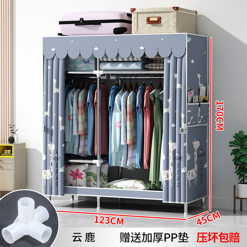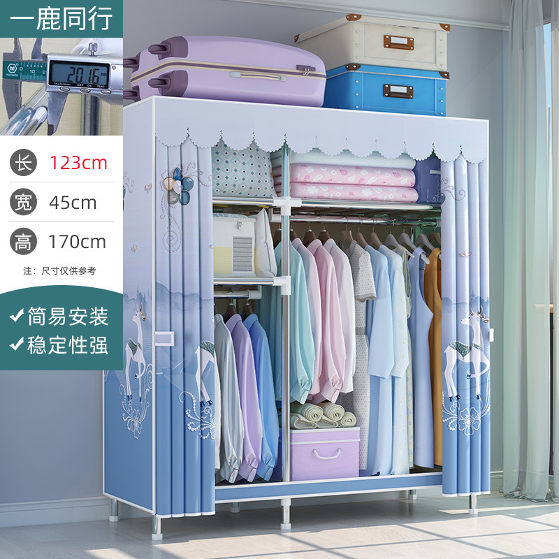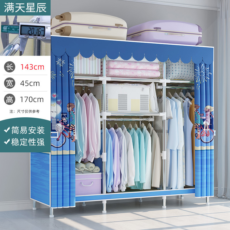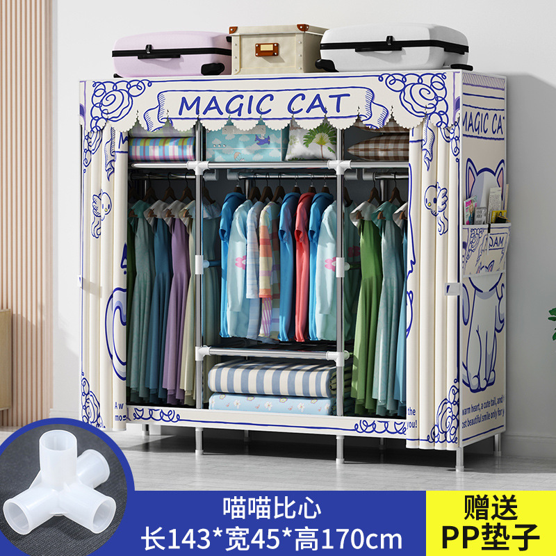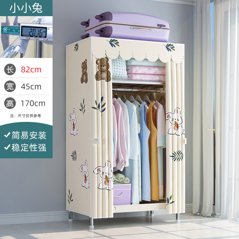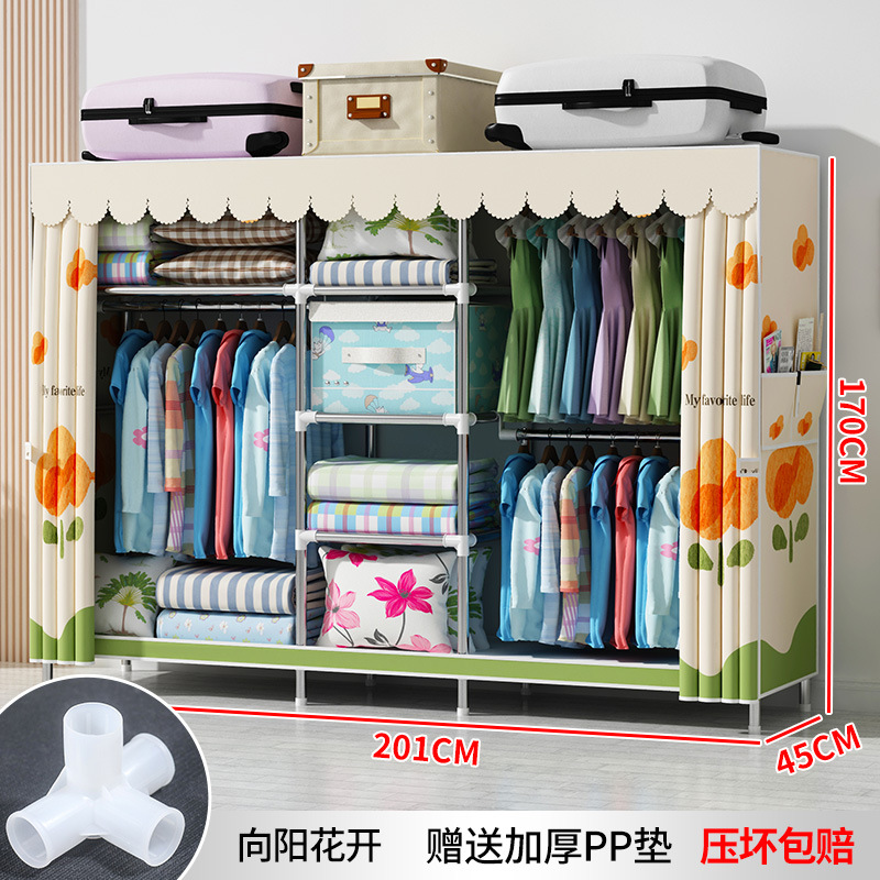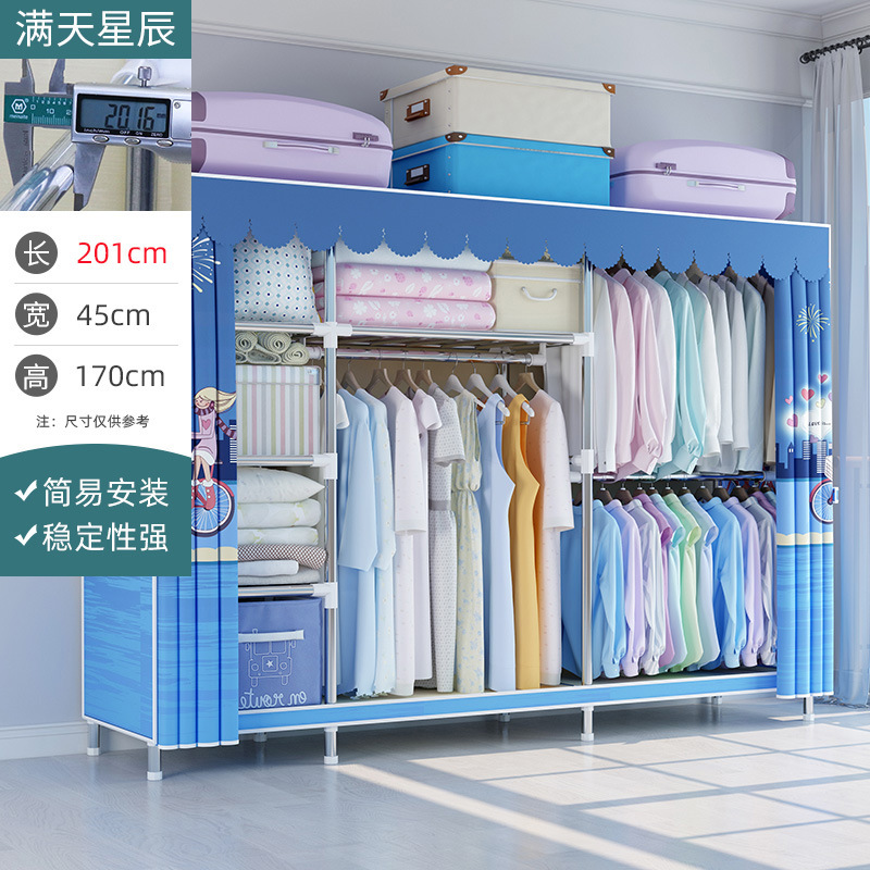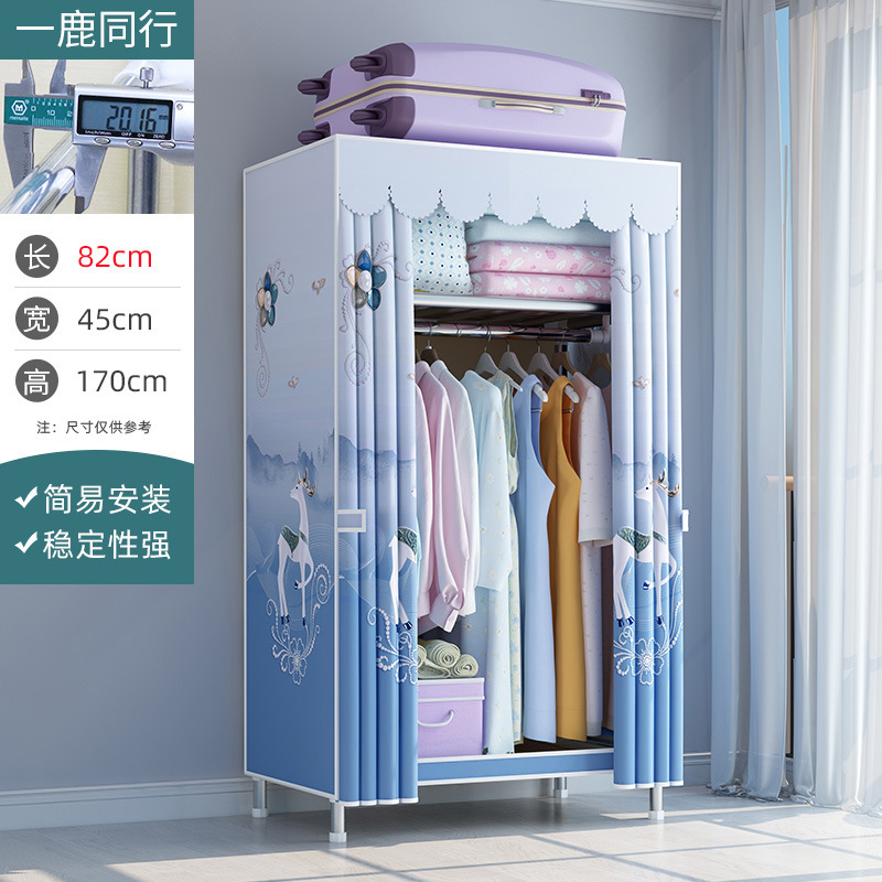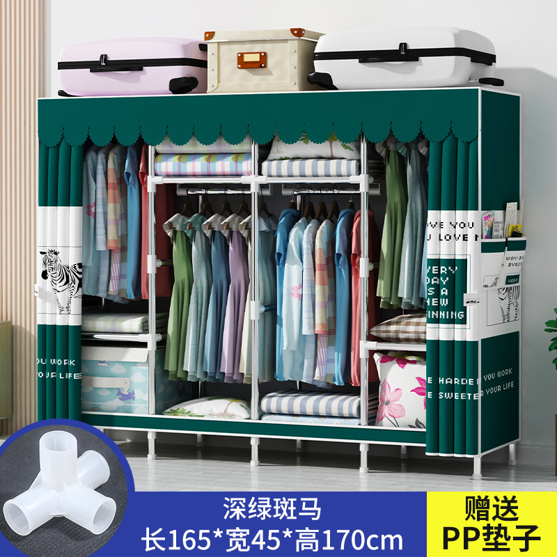 간단한 옷장 홈 굵은 강화 스틸 파이프 천 옷장 침실 조립 옷장 렌탈룸 옷 보관 랙