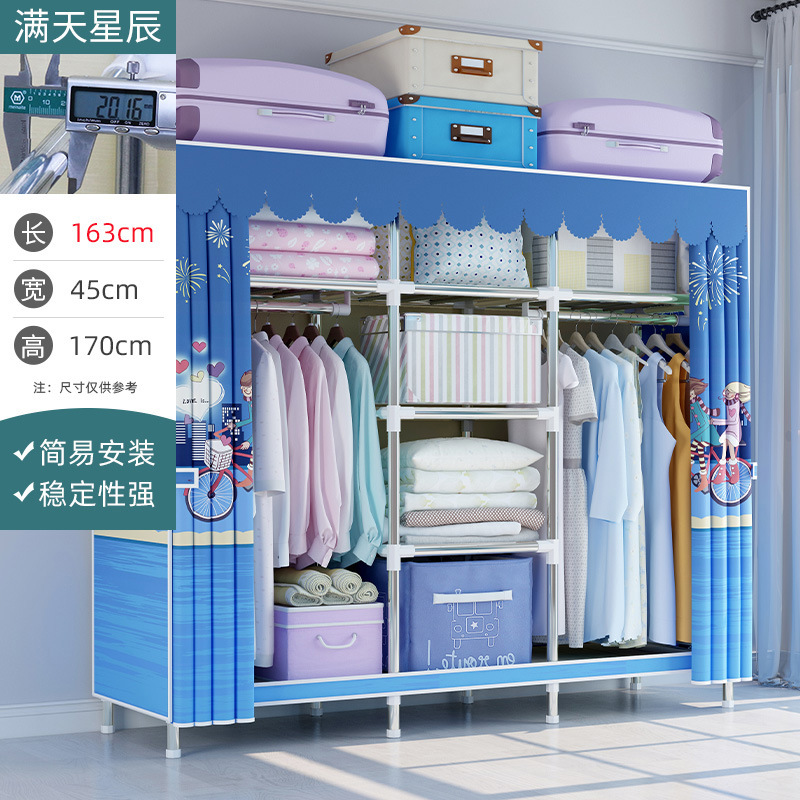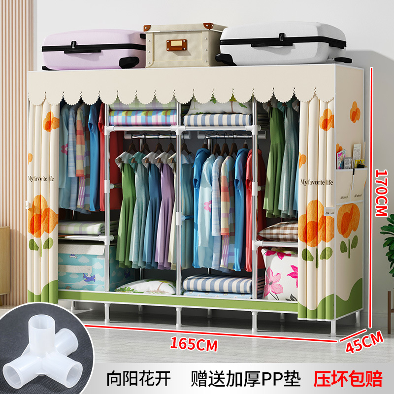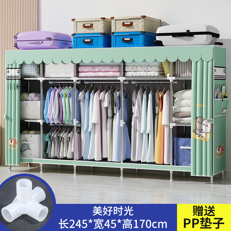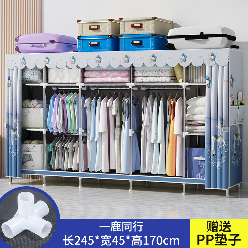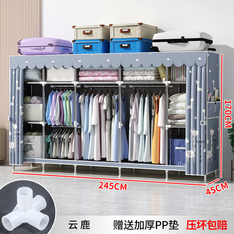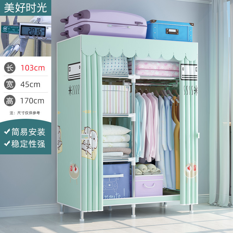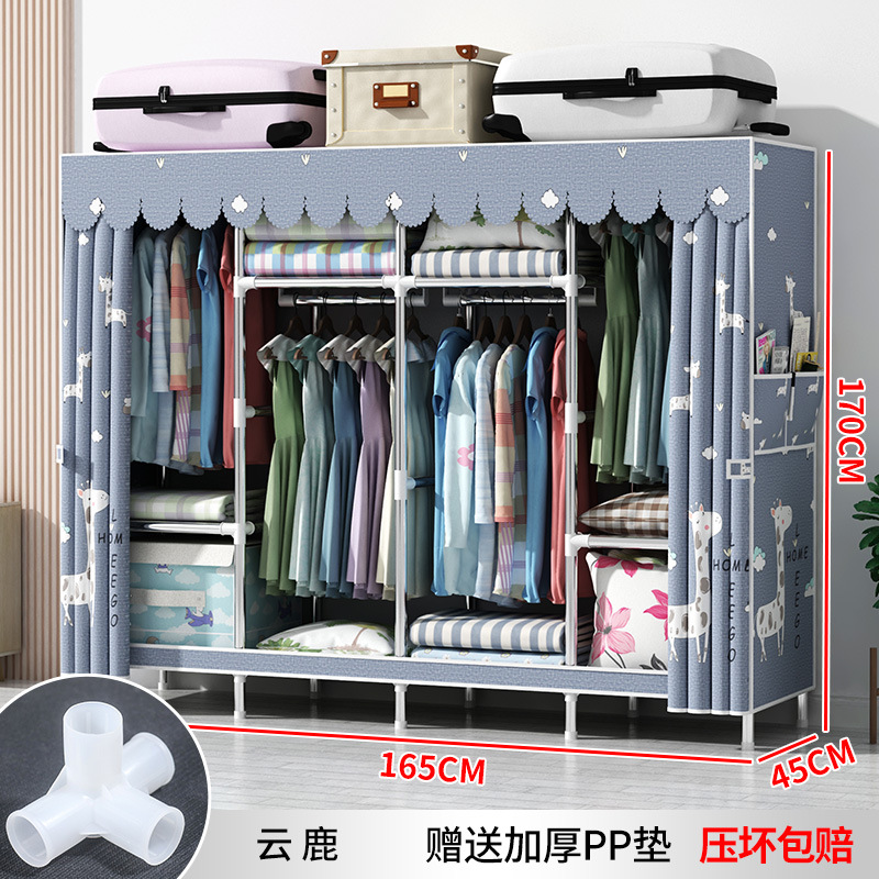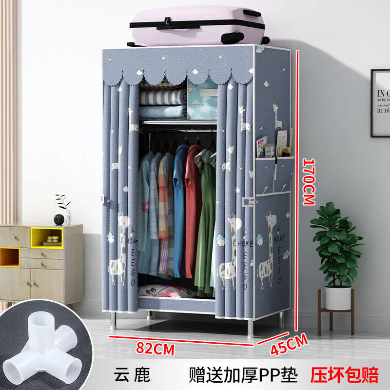 간단한 옷장 홈 굵은 강화 스틸 파이프 천 옷장 침실 조립 옷장 렌탈룸 옷 보관 랙