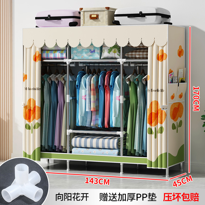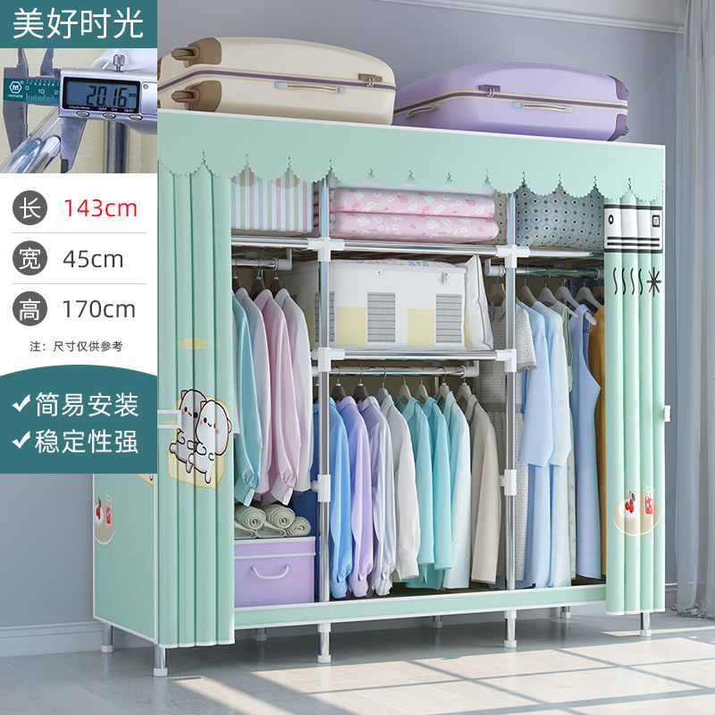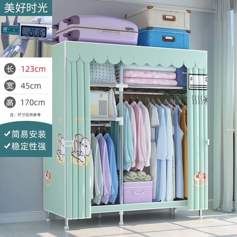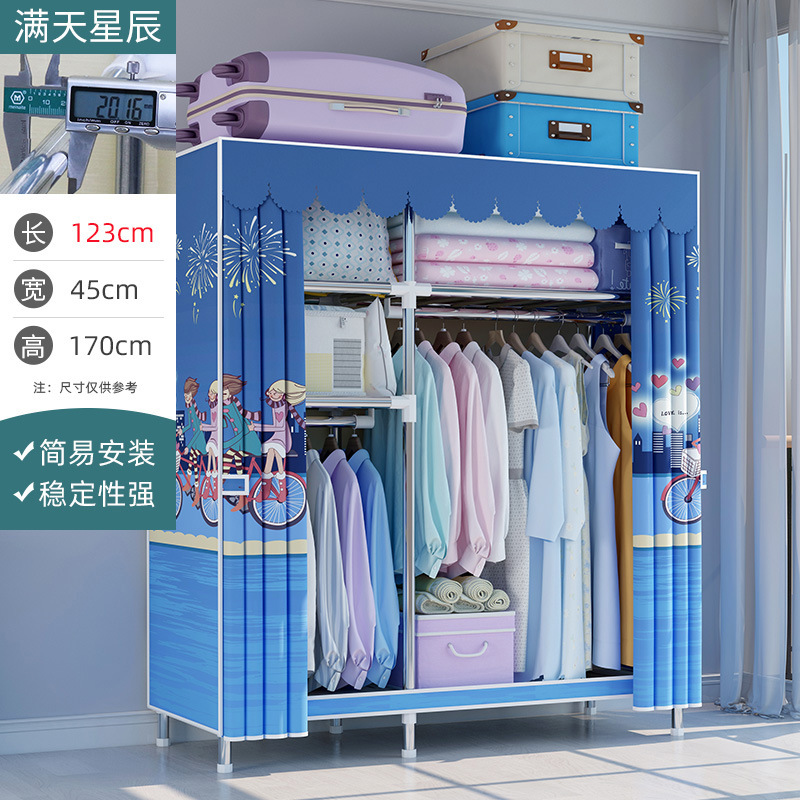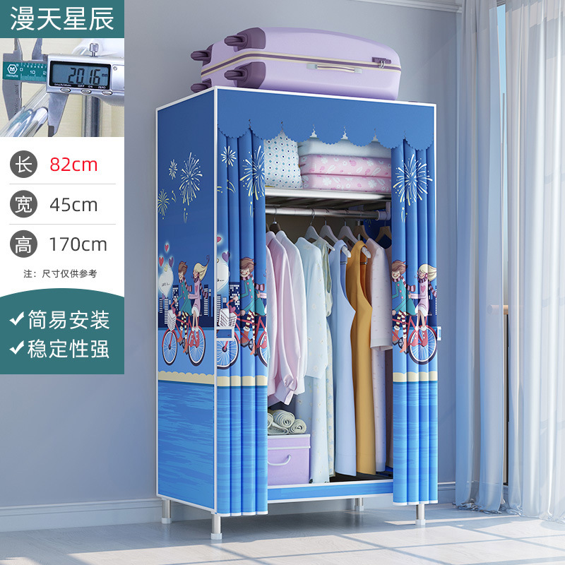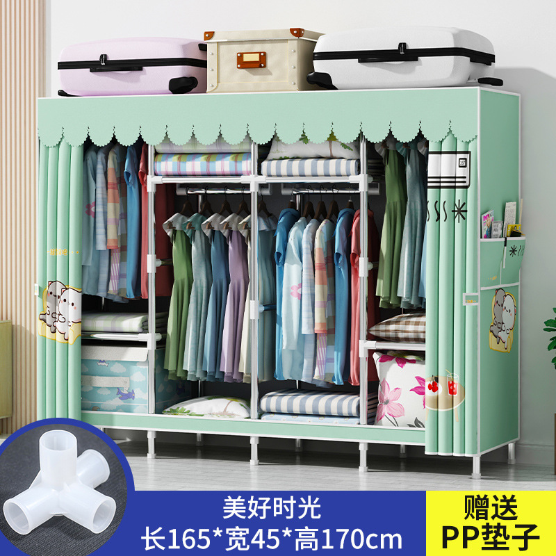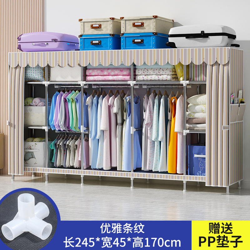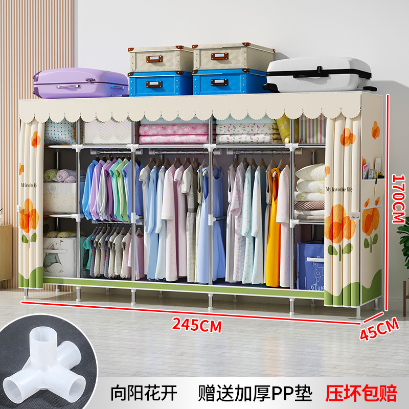 간단한 옷장 홈 굵은 강화 스틸 파이프 천 옷장 침실 조립 옷장 렌탈룸 옷 보관 랙